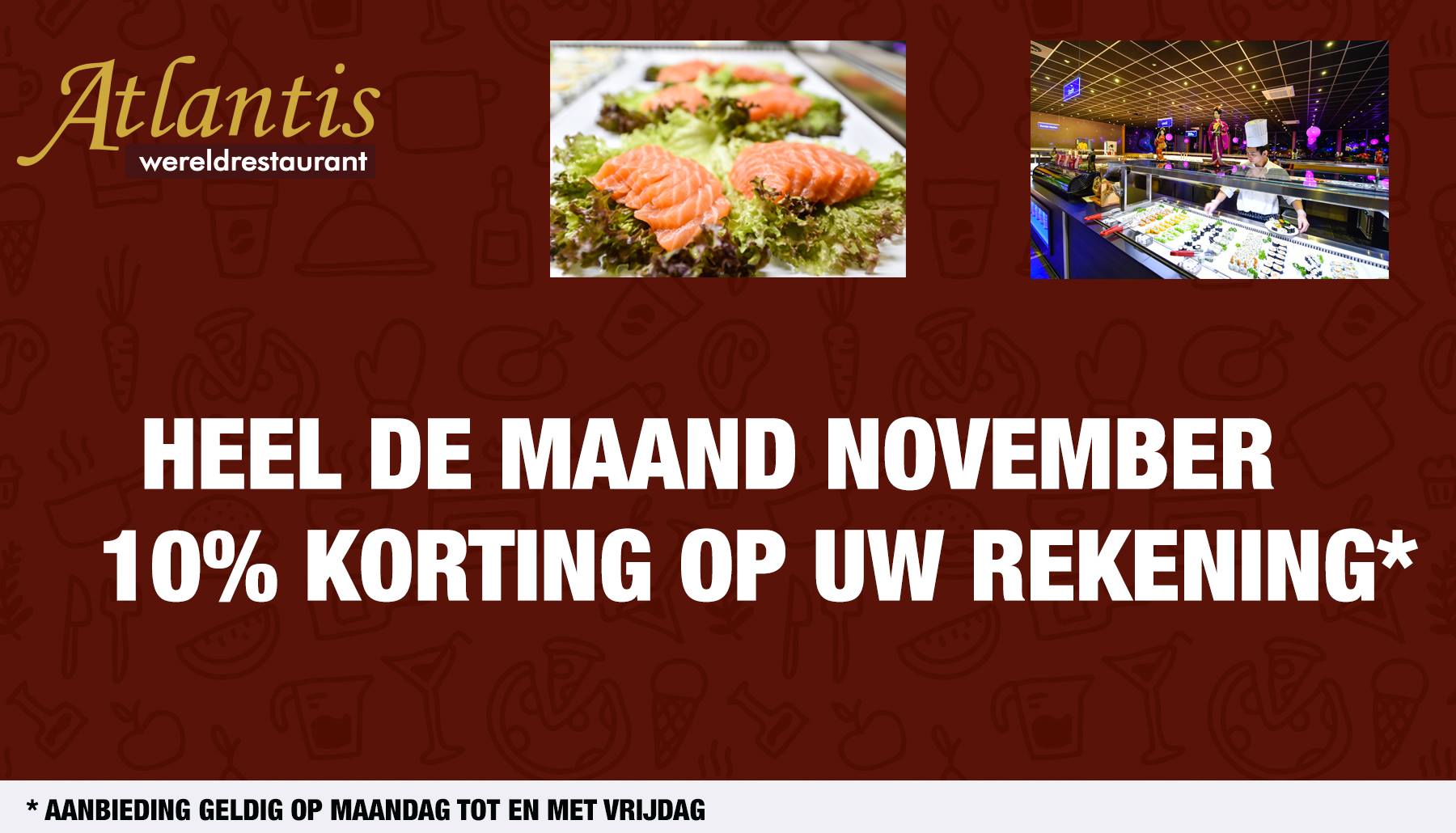 Wereldrestaurant Atlantis Nederweert heeft weer een exclusieve actie in de maand november. Je krijgt op je gehele rekening 10% korting*!