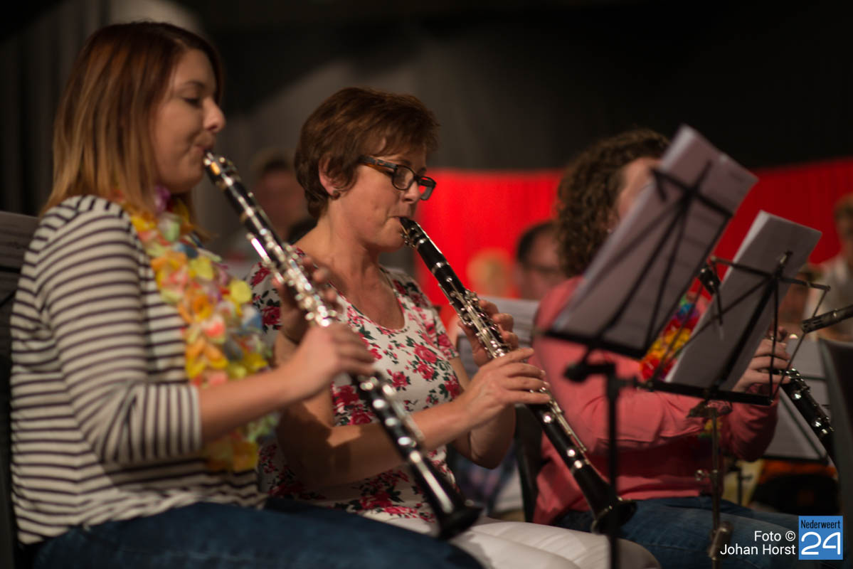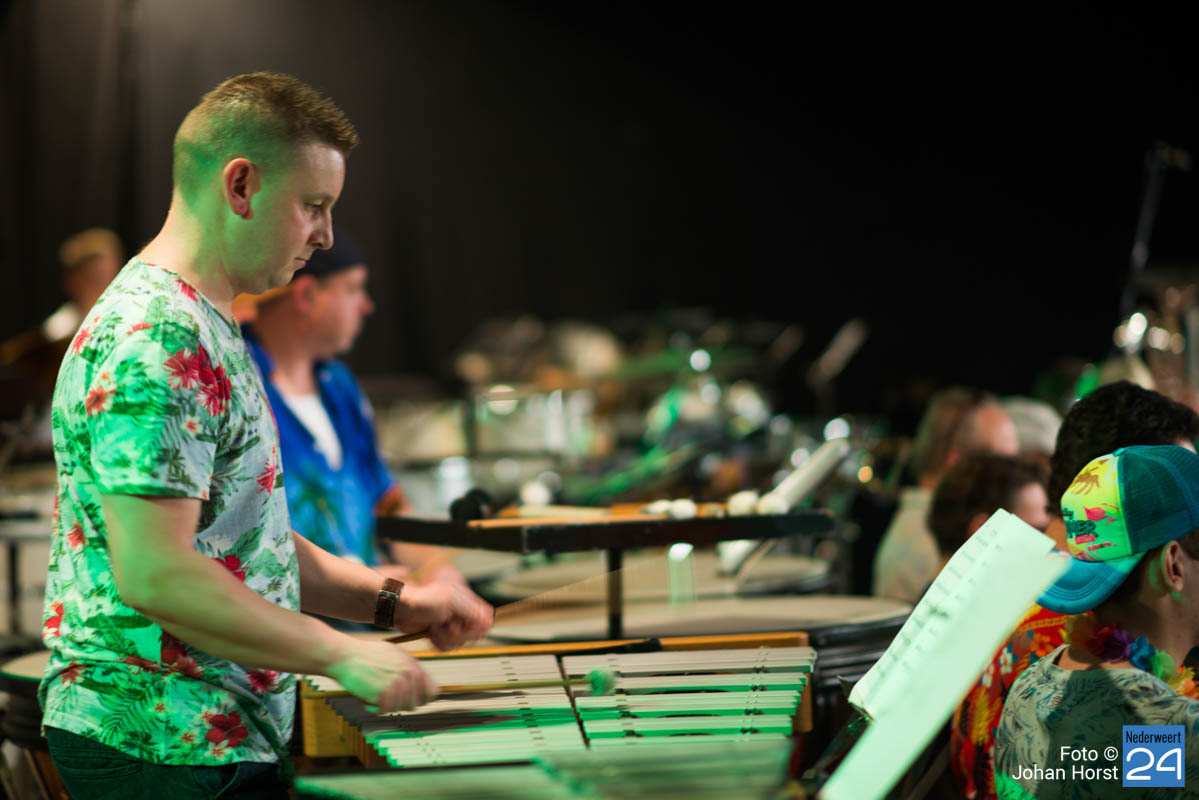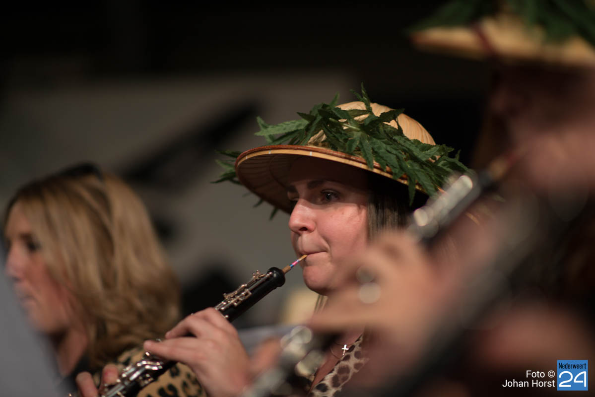 De muzikanten maakten er een wervelende show van. Harmonie en drumband Melodie der Peel haalden alles uit de kast om er een zeer spectaculair concert van te maken. Niet alleen met muziek en zang maar ook de nodige ludieke acteeracts droegen bij aan een zeer gevarieerde avond. Je werd meegenomen met een vliegreis rond de wereld. Alles werd in stijl uitgevoerd en je waande je dan ook al snel in een vakantiegevoel.