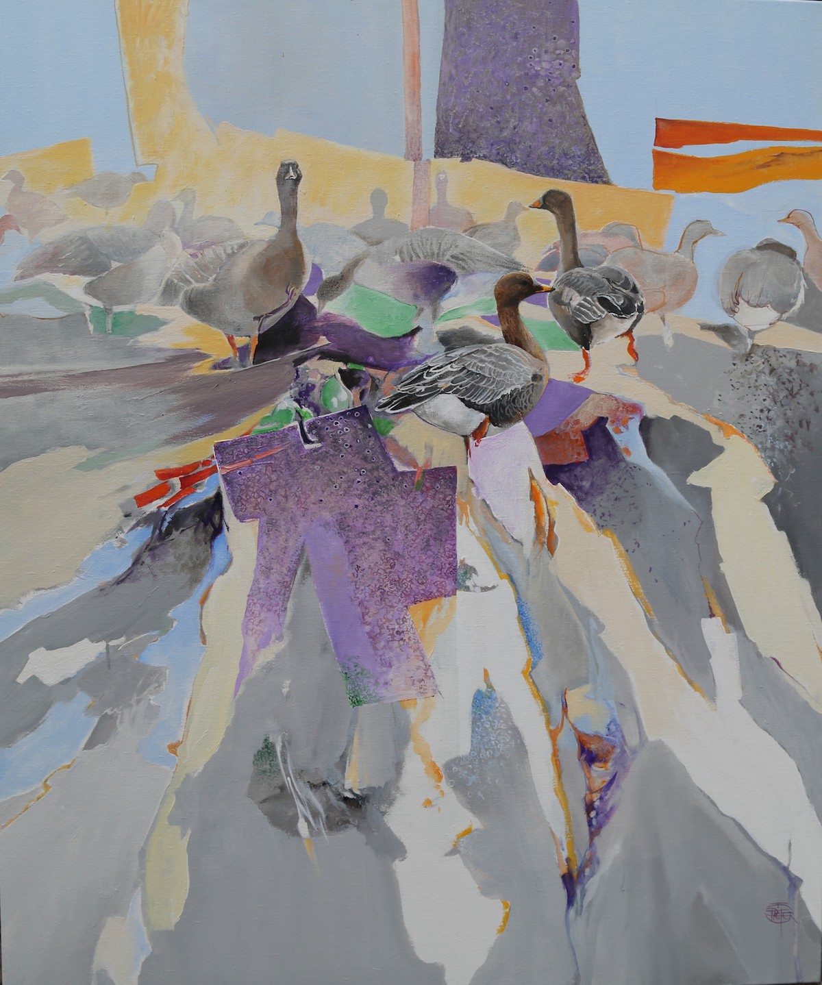 rietganzen-2“De natuur, het landschap, de vogels, de zoogdieren, de planten en de bloemen. Eigenlijk alles, wat groeit en bloeit, inspireert me”, opent hij het gesprek. “Voor mijn inspiratiebron hoef ik nier ver te gaan. Bij wijze van spreken komt de natuur naar mij toe. Ik woon immers vlak bij mijn inspiratiebron. De flora en fauna zijn het hele jaar erg bijzonder ongeacht de jaargetijden. Je mag gerust stellen, dat de levenscyclus  van de natuur mij  heel veel te bieden heeft. Winter, lente, zomer of herfst hebben allemaal iets speciaals. De natuur is voortdurend in beweging. Ieder jaargetijde is anders en dat is duidelijk in mijn schilderijen te zien.