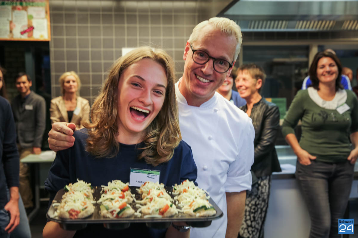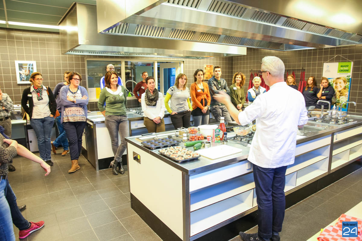In een gezellige ambiance kwamen groepsleerkrachten van groep 8 van het primair onderwijs in gesprek met medewerkers en leerlingen van het CITAVERDE College in Nederweert. De MAVO in het GROEN! nodigde topkok Rudolph van Veen uit, die op een ontspannen en ludieke wijze een workshop over gezond koken gaf.