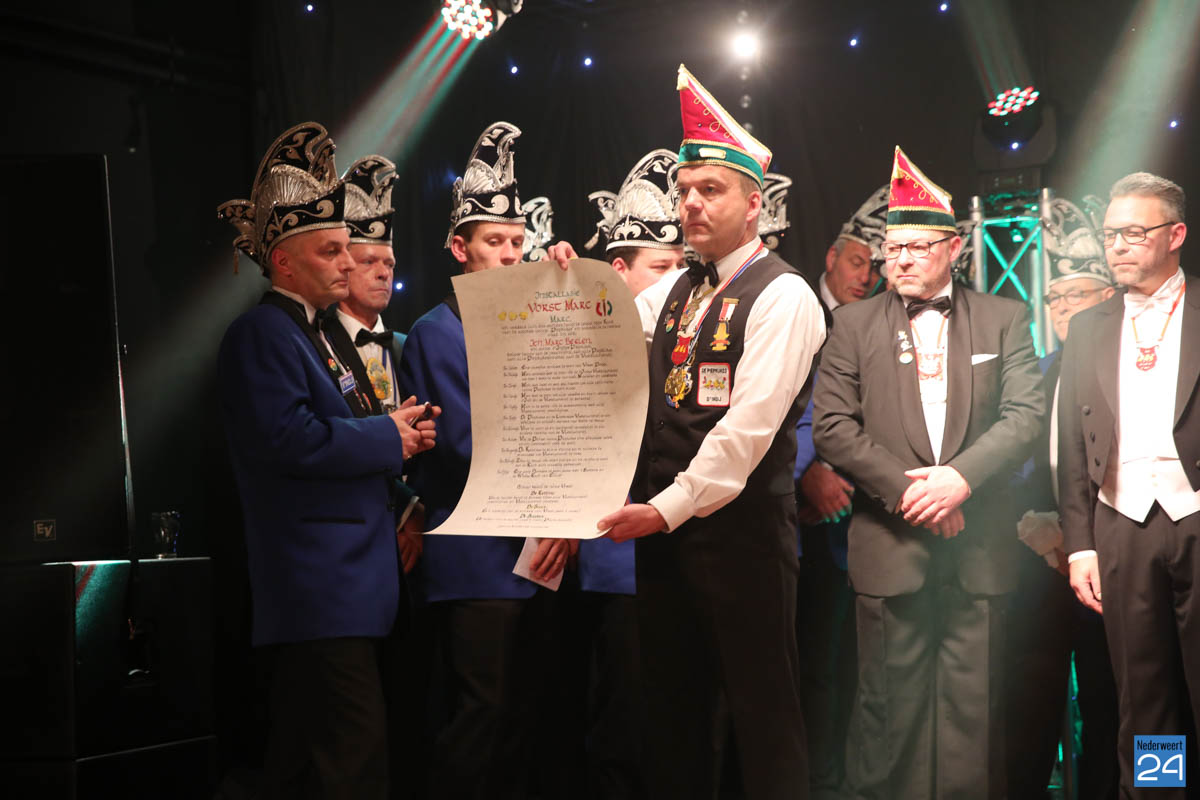 Na het afleggen van de eed werden de versierselen omgehangen die horen bij het Vorstenschap. Marc bedankt zijn ouders voor het met de paplepel ingeven van het vasteloavundjsgeveul en gaf zijn moeder hiervoor een dikke bos bloemen en een ferme kus. Na een ferme speech en de vele dankwoorden aan mensen om hem heen begaf Marc zich tussen de mensen om de felicitaties in ontvangst te nemen.