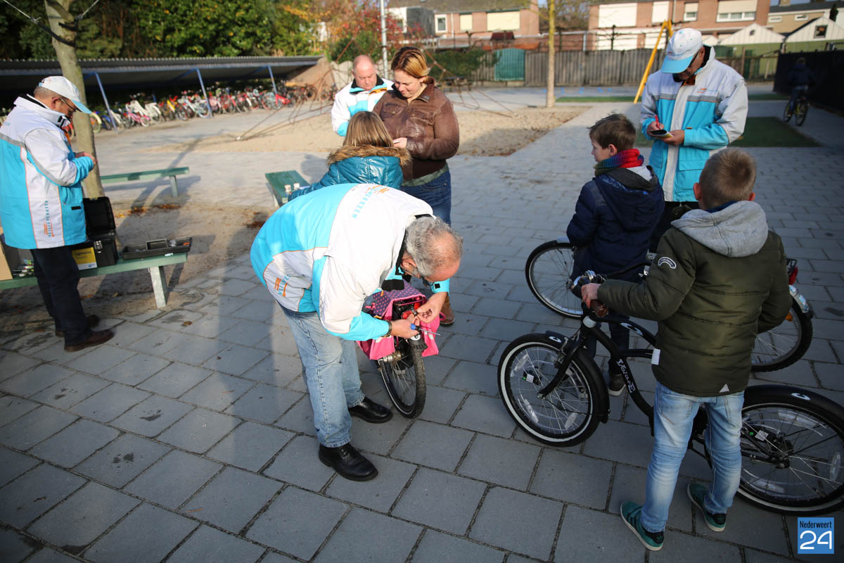 Veel fietsen waren in orde, maar er werden ook best wel een aantal gebreken geconstateerd. Hierbij moet je denken aan geen of een defect voorlicht, achterlicht, zijreflectie, reflector achterzijde, trapperreflectie of bel. Ook waren er fietsen zonder of met een slecht werkende rem of onvoldoende profiel op de banden. De papa’s of mama’s van deze kinderen hebben een kaart ontvangen waar de gebreken op staan. “Dus papa’s of mama’s aan de slag! Zorg dat de fietsen van de kinderen in orde zijn,” sommeert Tjeu Stultiens.