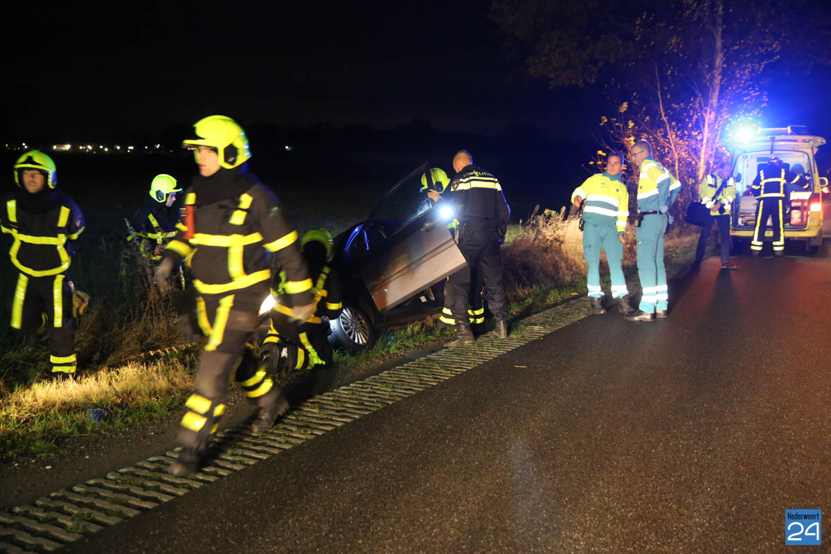 De bestuurder reed richting de Roermondseweg maar is door onbekende oorzaak de macht over het stuur verloren en in de sloot terecht gekomen. Hij is met hulp van de brandweer en het ambulancepersoneel uit de auto gehaald en met onbekende verwondingen naar het ziekenhuis gebracht. De politie onderzoekt de toedracht van het ongeval.