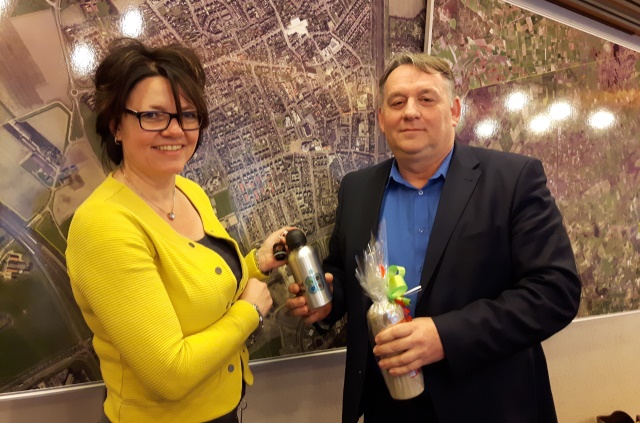 Om hem te bedanken voor zijn enthousiasme en betrokkenheid, overhandigde projectleider van Buitengebied in Balans, Petra Philips van de gemeente Nederweert, aan het einde van de laatste bijeenkomst van 2016 een kleine attentie. In Nederweert zal de ambtelijke organisatie de nieuwe werkwijzen die zijn ontwikkeld in het schakelteam, steeds meer toepassen in de dagelijkse praktijk.