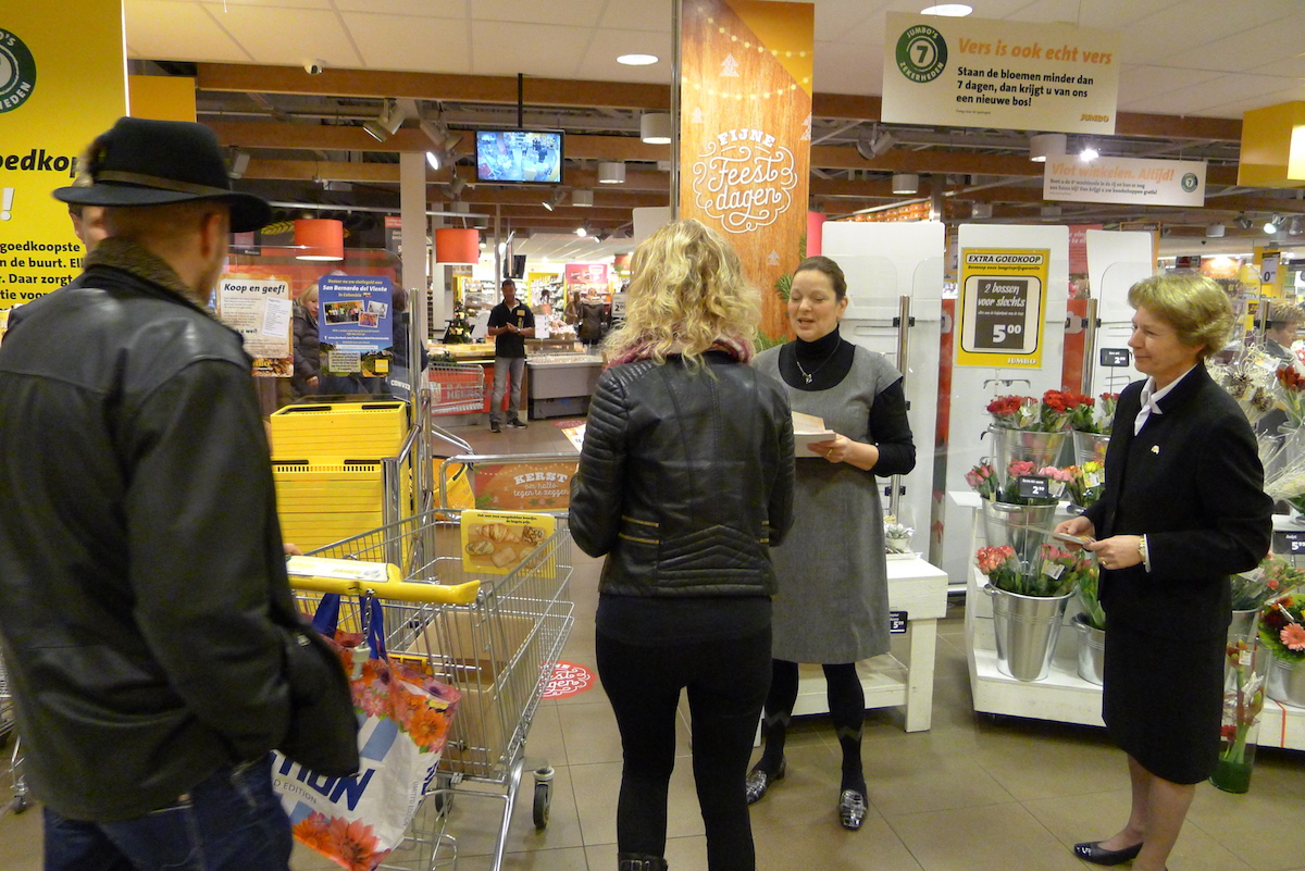 Hoe doe je mee? Koop houdbare (dus geen gekoelde of bevroren) producten en doe ze na de kassa in de kratten. Je kunt denken aan: pasta of soep (blik / pak), groente (blik / pot), fruit (blik / pot), broodbeleg, koffie, thee, suiker, afwasmiddel, allesreiniger, schoonmaakartikelen, wc-papier, keukenrollen, tandenborstels, tandpasta en nog veel meer. Alle giften zijn van harte welkom. Het is voor mensen die een steuntje in de rug kunnen gebruiken.