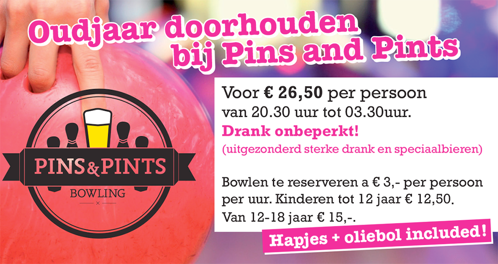 Ga rollend het jaar 2017 in bij Pins & Pints Bowling voor € 26,50 per persoon van 20.30 uur tot 03.30 uur. De drank (uitgezonderd sterke drank en speciaalbieren) is onbeperkt.