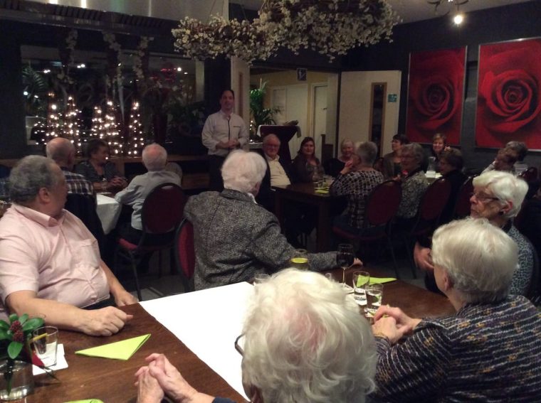 Gisteravond heeft het gezelschap van “Ontmoeten doet groeten” genoten van een heerlijk diner in de wintertuin van Zaal Centraal. Dennis had een heerlijke tomaten- julienne soep gemaakt en serveerde daarna een uitgebreid buffet met allerlei warme gerechten. Als toetje was er een superlekkere chocolade mousse.