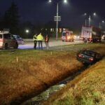 Vrijdagavond is een auto in de sloot naast de Randweg Zuid in Nederweert geraakt nadat hij moest uitwijken voor een vrachtwagen met oplegger.