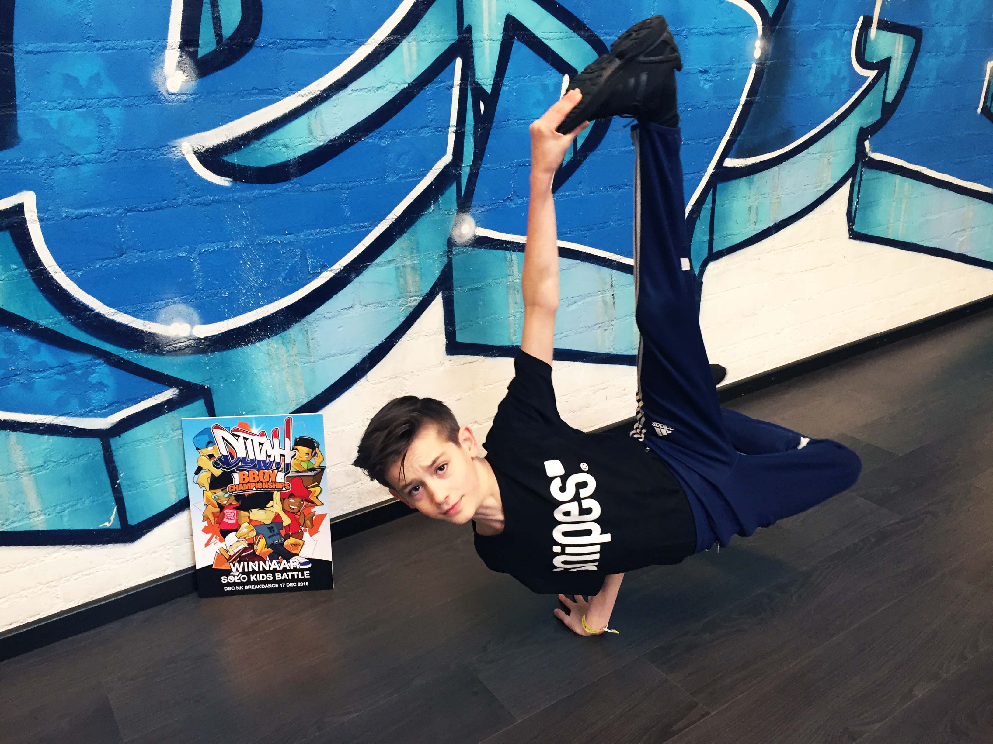 De 13-jarige breakdancer Cis Brans uit Weert heeft afgelopen weekend de titel Nederlands kampioen breakdance gewonnen bij de officiële Dutch B-Boy Championships in Eindhoven. Cis deed samen met ongeveer 30 andere kids van zijn crew ‘Fresh Allstars’ mee aan de 1 tegen 1 kids battles t/m 14 jaar.
