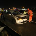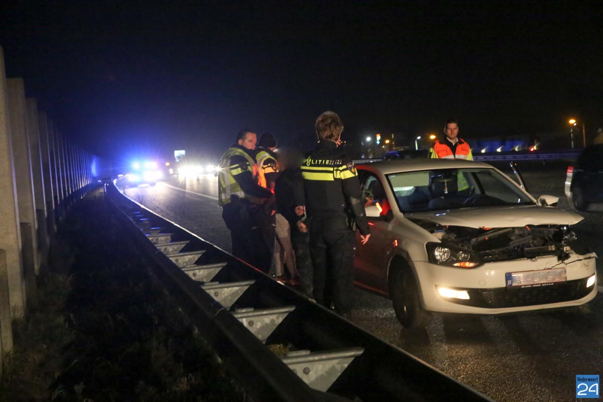 Volgens getuigen zou de auto eerst links en daarna rechts tegen de vangrail zijn gebotst om uiteindelijk op de vluchtstrook tot stilstand te komen. De auto raakte, volgens getuigen, wonder boven wonder alleen aan de voorkant flink beschadigd. Het ambulancepersoneel heeft de twee inzittenden onderzocht maar beide kwamen met de schrik vrij. Eén inzittende is na wat discussie aangehouden door de politie. Er was onduidelijkheid over wie van de twee zou hebben gereden.