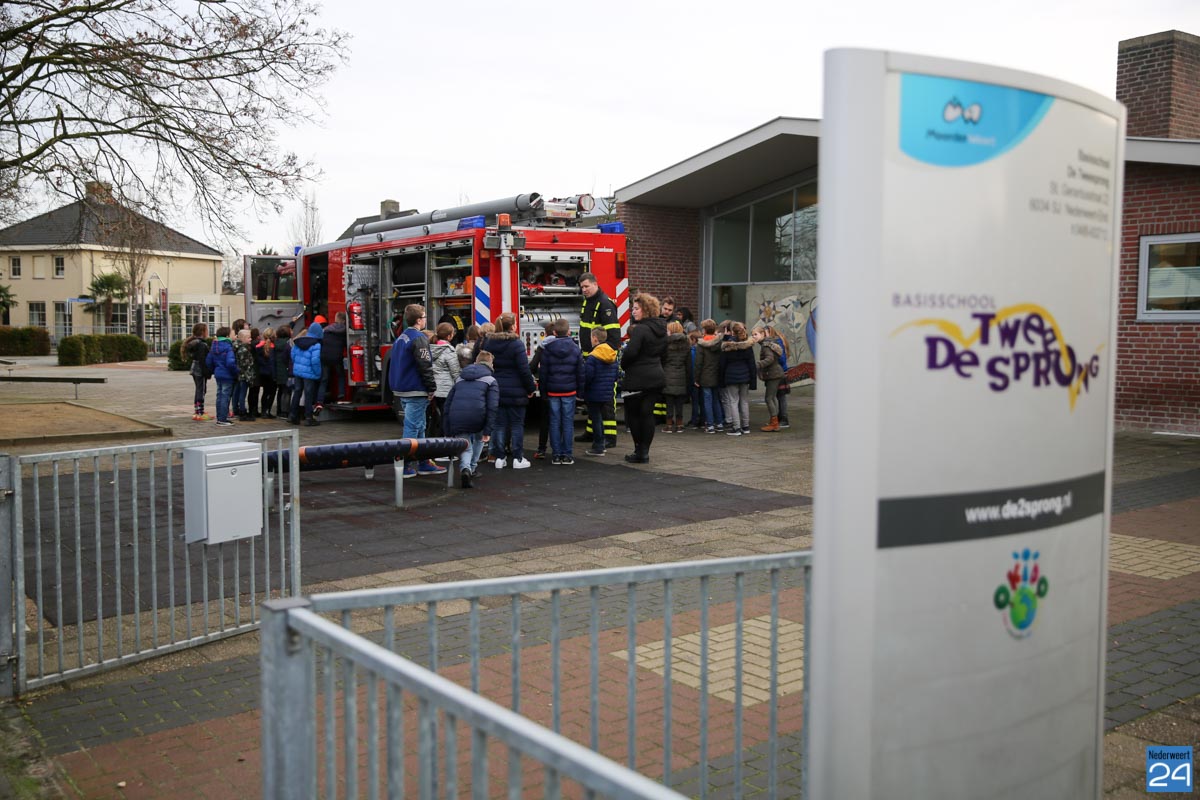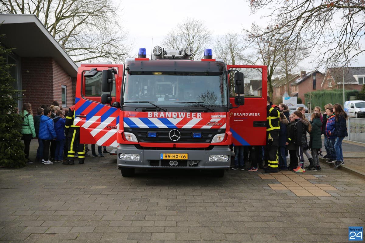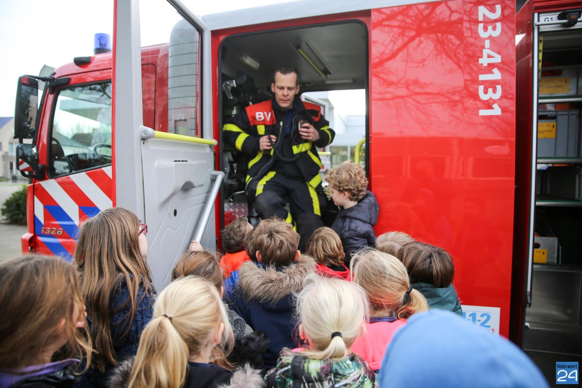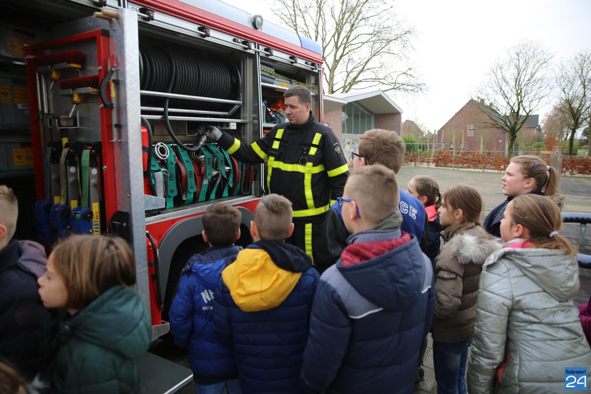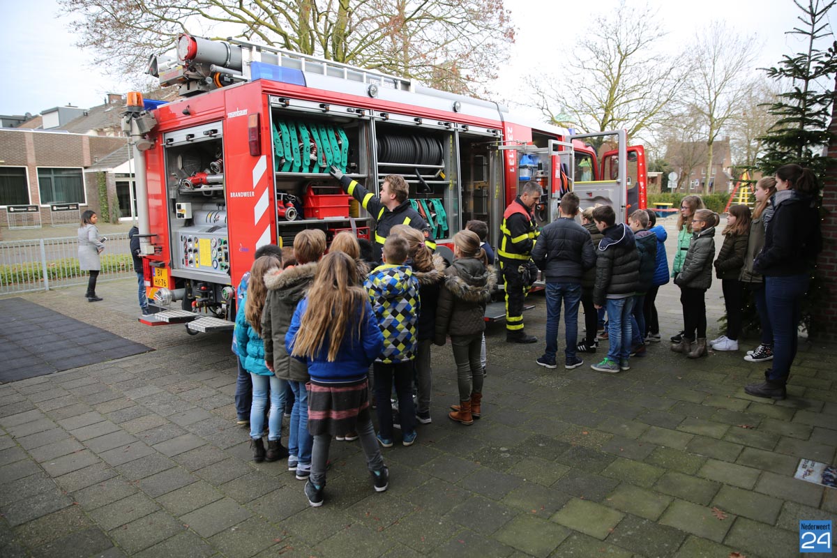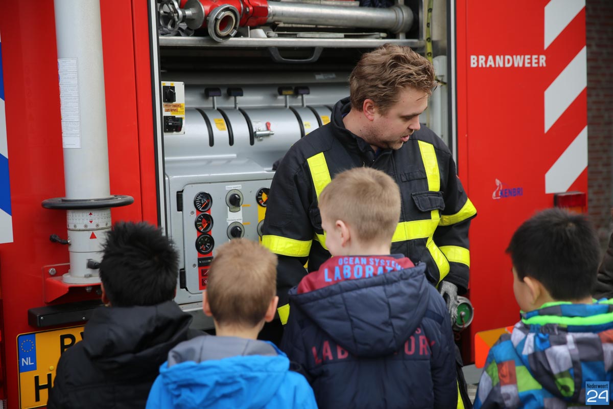 Afgelopen weken stonden op school in het teken van brandveiligheid. Wat te doen bij brand en wat juist niet? De leerlingen hebben samen met de leerkrachten de school bekeken en beoordeeld op brandveiligheid. Alle onderdelen kwamen aan bod, maar wat nu als het toch mis gaat? Dan komt de brandweer! Om de leerlingen een duidelijk beeld te geven over de ins en outs van de brandweer had de school de brandweer uitgenodigd. En dat doen de vrijwilligers, die dag en nacht paraat staan, natuurlijk maar al te graag.