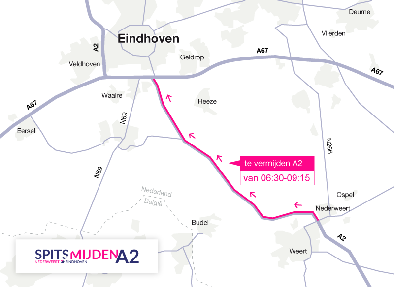 Volgende week start een werving van automobilisten die actief de ochtendspits willen mijden op de A2 tussen Nederweert en Eindhoven. Automobilisten kunnen in 2017 een beloning ontvangen voor iedere gemeden ochtendspits op dit traject. Rijkswaterstaat en provincie Noord-Brabant willen zo de verkeersdruk tijdens de ochtendspits verminderen.