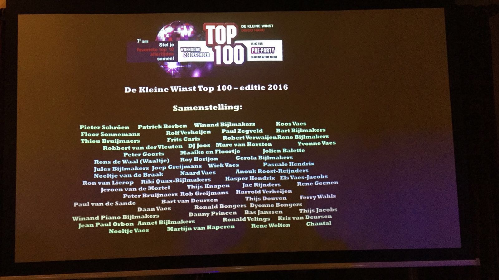 De 7e editie van Disco Haro’s Top 100 kent een gloednieuwe nummer 1: Mia van Gorki. Traditioneel tussen kerst en oud op nieuw, draaien de twee huis-dj’s van De Kleine Winst de 100 beste platen, gekozen door bezoekers van het eetcafé. Een lijst waarin Bruce Springsteen domineerde, een lijst waarin twee grote Nederweertse families (Bijlmakers en Vaes) de toon bepaalde, een lijst zonder Queen, een lijst die in Paul Feiijen zijn bewoording ‘gruwelijk goed’ is.