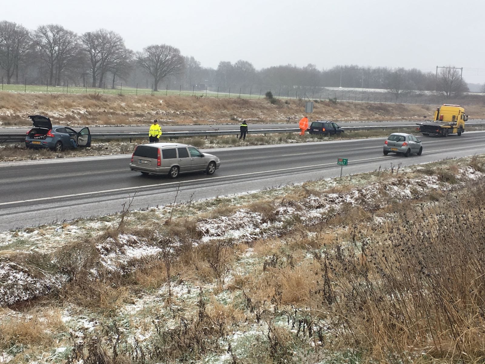 Op de snelweg A2 ter hoogte van Nederweert zijn twee auto’s van de weg af geglibberd en in de vangrail tot stilstand gekomen. Voor zover bekend raakte niemand gewond.