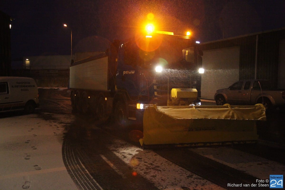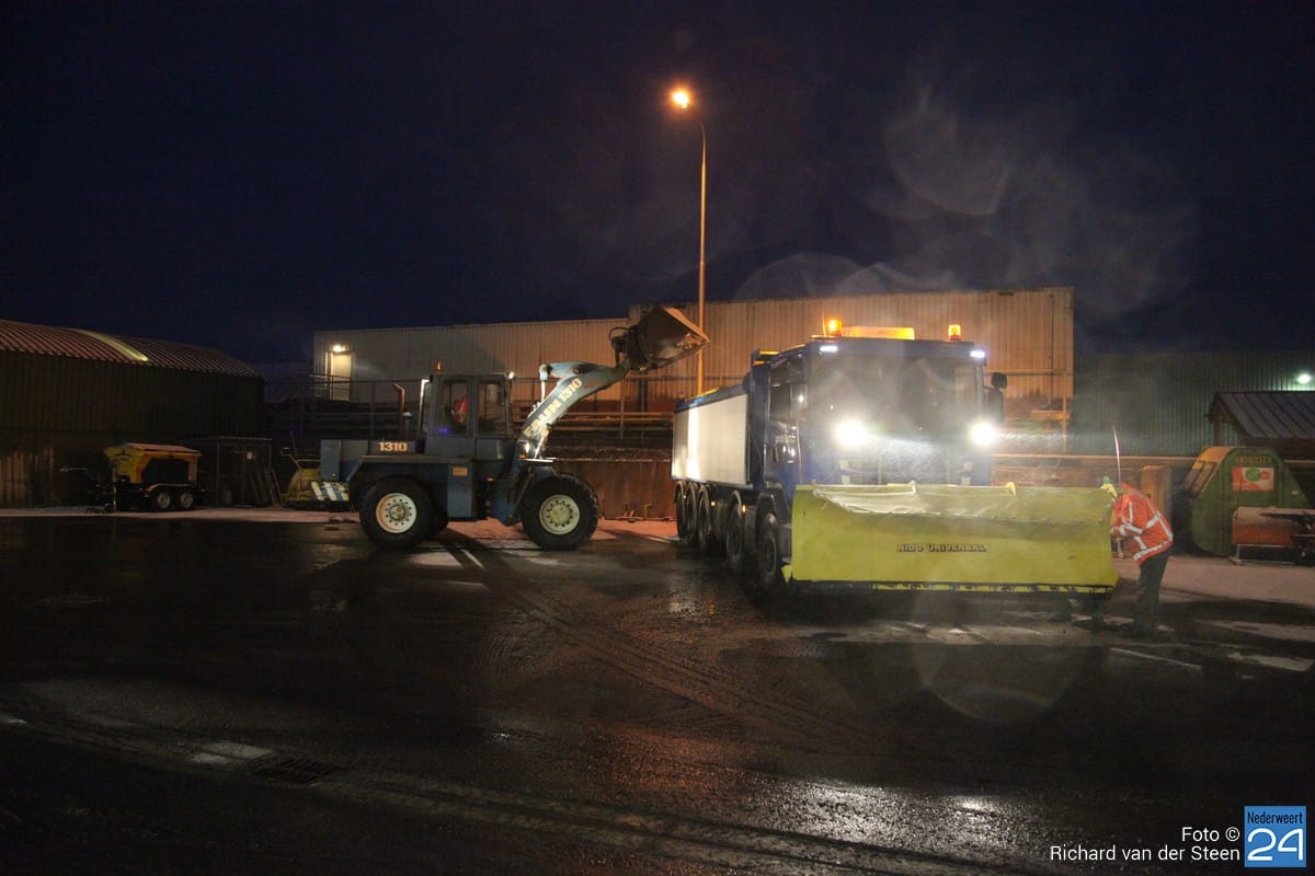 Aan de Staterweg in Nederweert ligt een dependance van de provincie Limburg. Vanaf hier zijn vanmorgen vroeg 13 strooiwagens verstokken om de wegen in de regio sneeuwvrij te maken. De A2 tussen Maasbracht en Leende hoort hier ook bij. Drie tractoren zorgen voor het begaanbaar maken van de fietspaden. Gemeente Nederweert doet dit op de doorgaande wegen.
