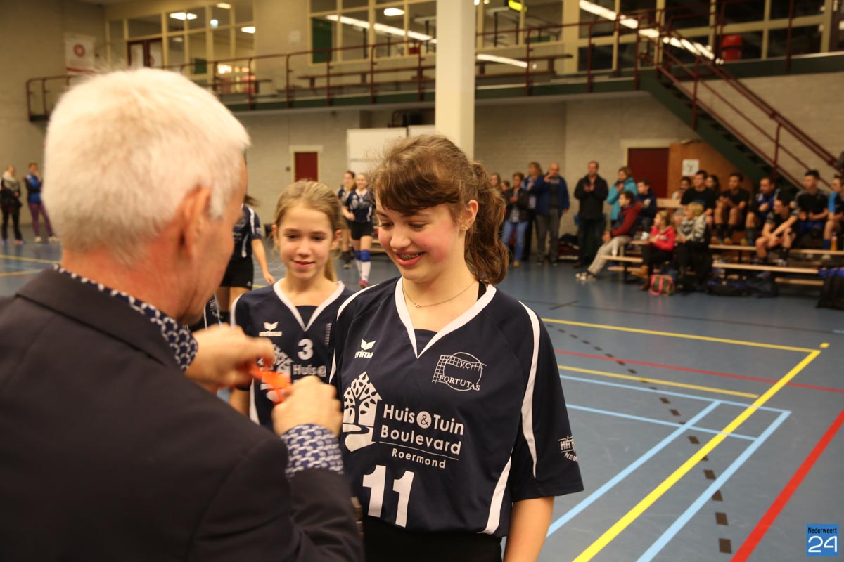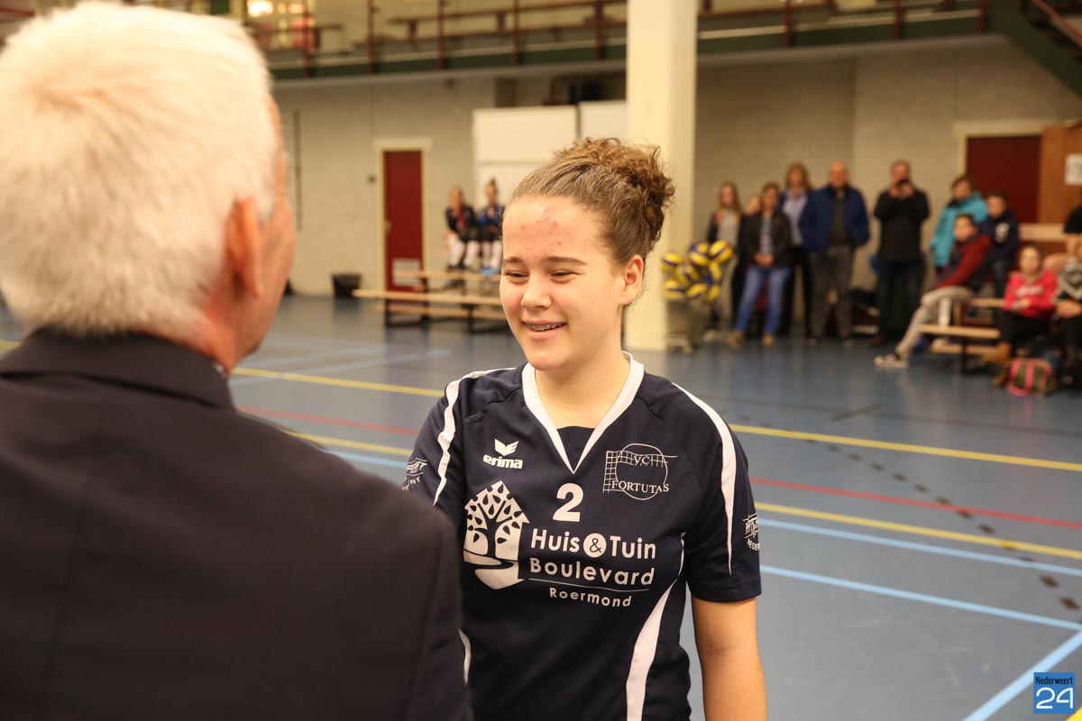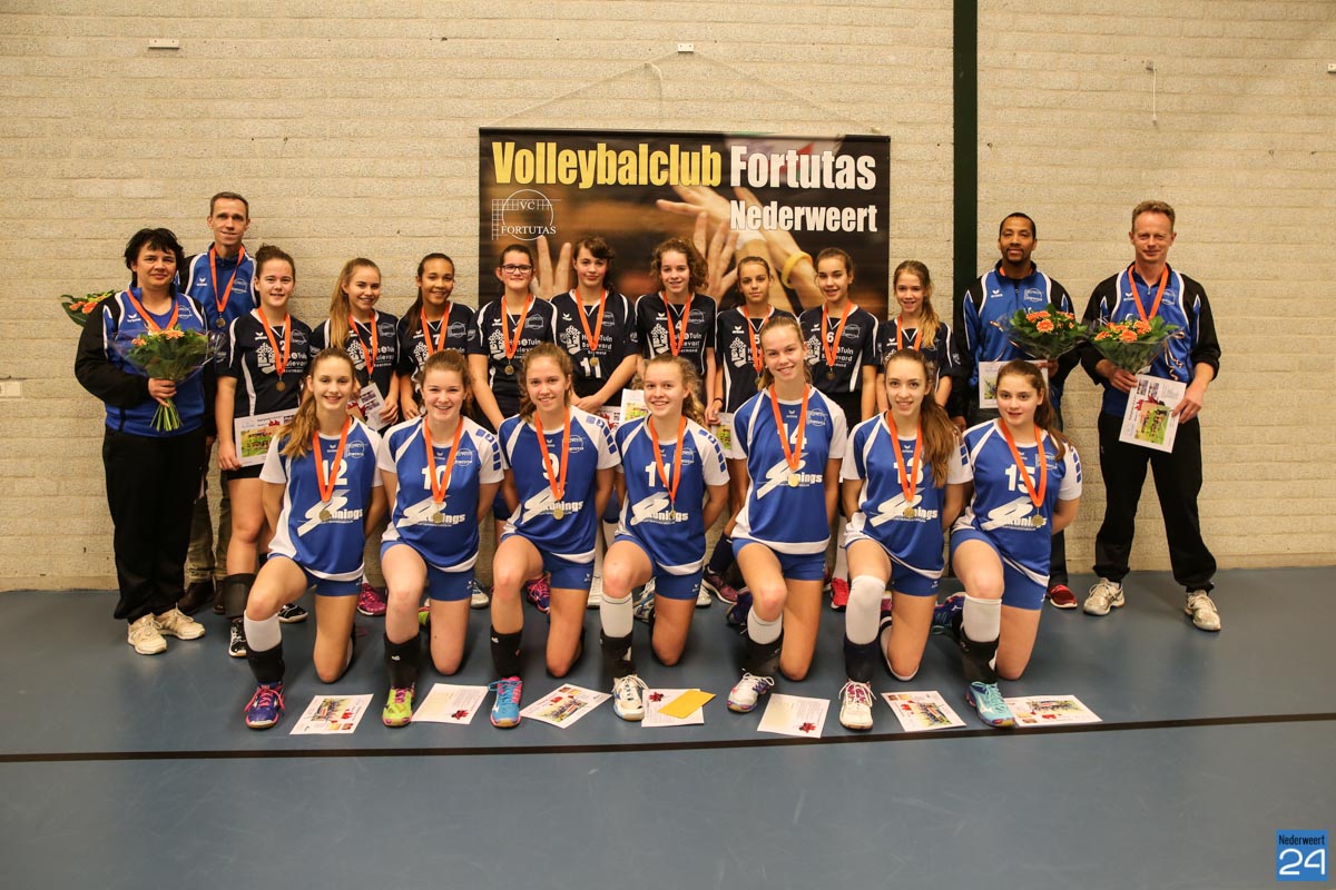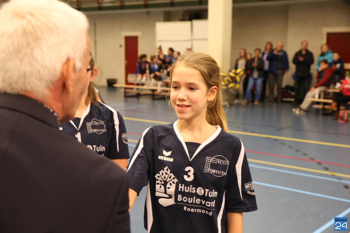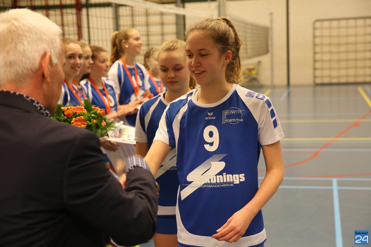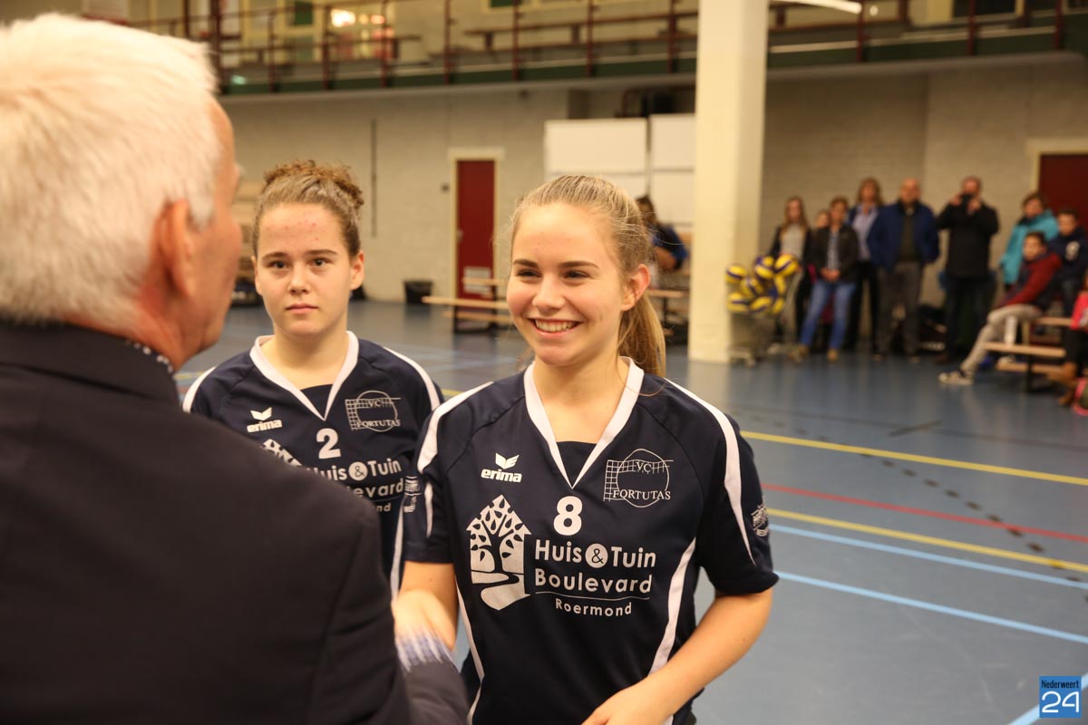 Onder grote belangstelling zijn op maandagavond 9 januari in sporthal de Bengele de volleybal kampioenen van VC Fortutas gehuldigd door wethouder Henk Geraats en voorzitter Niek Creemers. De teams Meisjes B1 en Meisjes C1 zijn onlangs kampioen geworden en voor deze prestatie werden ze op deze avond in het zonnetje gezet. Door deze resultaten kunnen we in Nederweert weer vele wedstrijden op top jeugd niveau zien.
