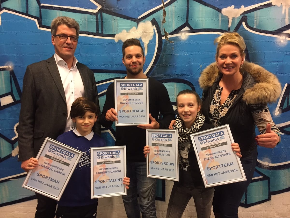 Sporttalent: Roel van Overbeek (basketbal), Emmie Weekers (hardlopen), Meike Hulleman (turnen), Alessandra Wiezer (paardrijden eventing) en Lorenzo Caboni (breakdance)