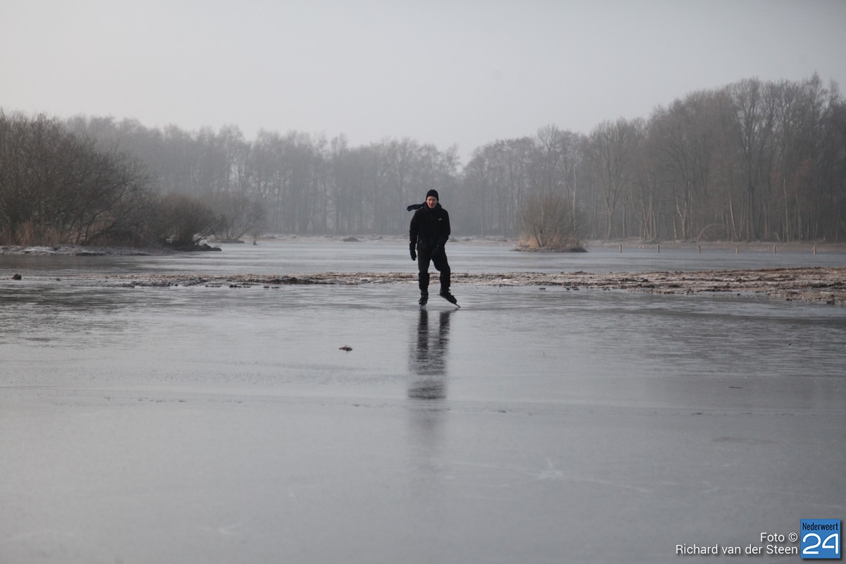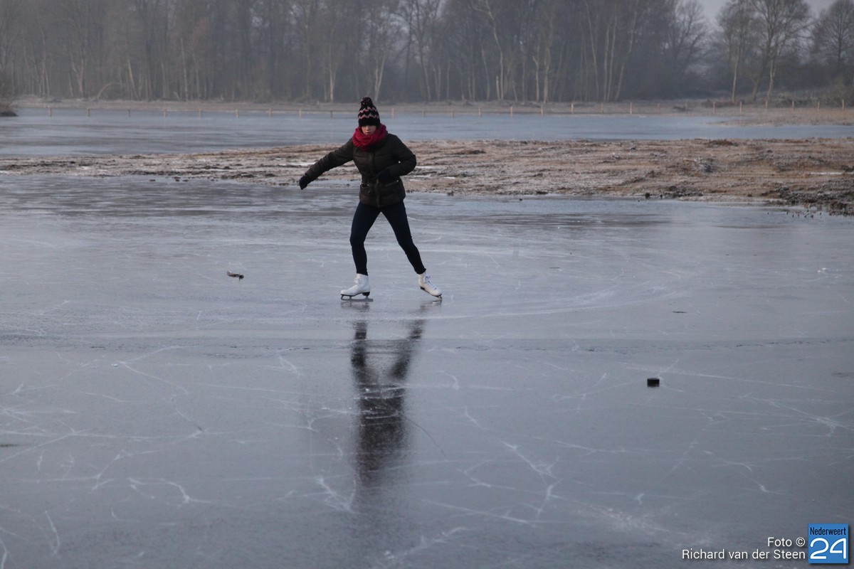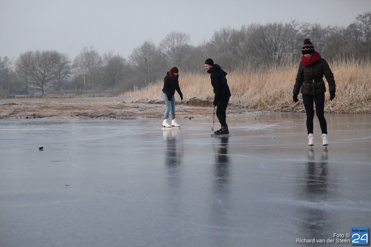 Volgens ijsmeester Frans Kessels uit Ospel is het ijs nog lang niet dik genoeg om te schaatsen. Het is op dit moment amper 3 centimeter en het moet toch zeker 4 – 5 centimeter zijn voordat het veilig is. Frans verwacht dat het zeker nog twee nachten stevig moet vriezen voordat het veilig is om schaatsen onder te binden.