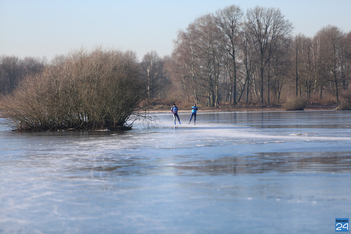 Gisteren waren de eerste waaghalzen al te bespeuren op het natuurijs van natuurgebied Sarsven en de Banen in Nederweert. Echte lefgozers waren het want zelfs vandaag, na een nacht stevige vorst, is het ijs nog niet dik genoeg.