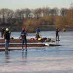 Het ijs kraakt aan alle kanten als je er op staat. Als je gaat schaatsen, ga dan niet in grote groepen bij elkaar staan en kijken goed uit voor zwakke plekken. “Vanmiddag stijgt de temperatuur boven de 0 graden en dan is het eigenlijk niet meer verstandig om het ijs op te gaan” waarschuwt de ijsmeester. Met nog een nacht flinke vorst zal het ijs morgen waarschijnlijk weer een centimeter dikker zijn. Om massaal en veilig te kunnen schaatsen moet het ijs echter 7-8 centimeter zijn. Dus je bent gewaarschuwd, schaatsen is op eigen risico en wees voorzichtig!