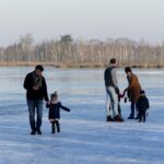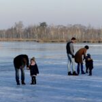 Vanmorgen was het nog niet zo druk. Die paar die aanwezig waren vonden het dan ook wel een beetje spannend om het ijs op te gaan. Het ijs kraakt af en toe maar dat hoort er natuurlijk bij. Ook veel wandelaars lopen even het ijs op met de kids. Een bijzondere beleving om op het Meerbaansblaak in De Grote Peel te lopen. Misschien wel het mooiste plekje van Nederweert om even te schaatsen.