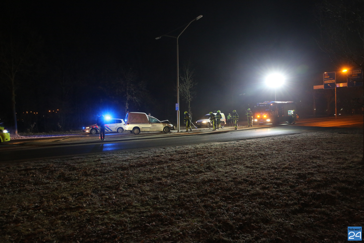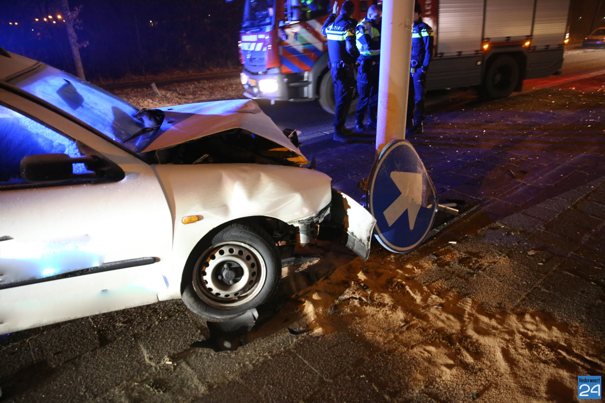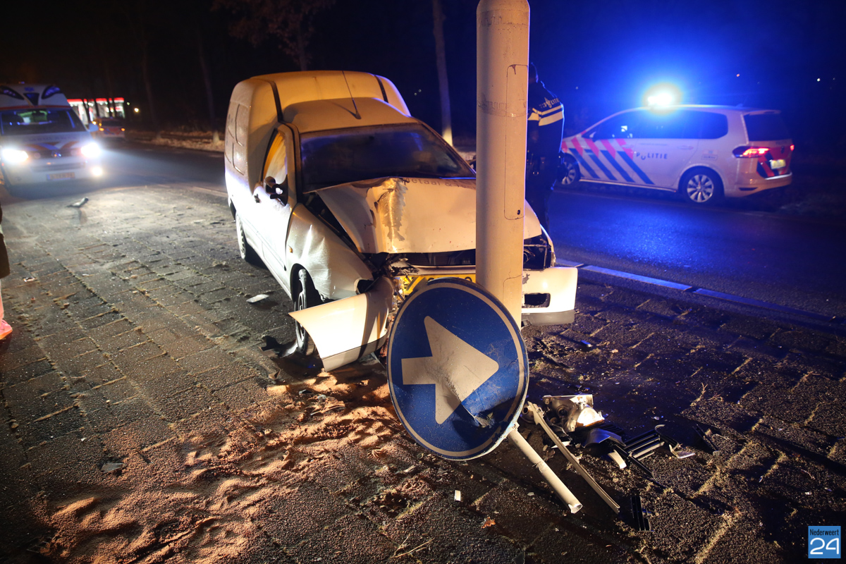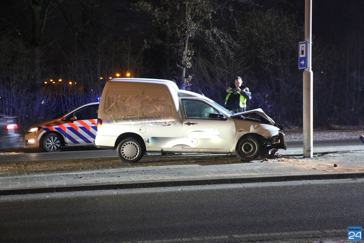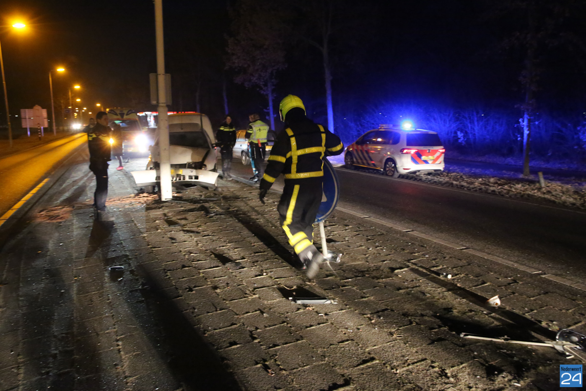 Donderdagmorgen is een automobilist licht gewond geraakt bij een aanrijding op de Ringbaan-Oost in Weert. Door nog onbekende oorzaak is de auto boven op het verdrijvingsvlak terecht gekomen, een verkeersbord uit de grond gereden en is toen tot stilstand gekomen tegen een lantaarnpaal.