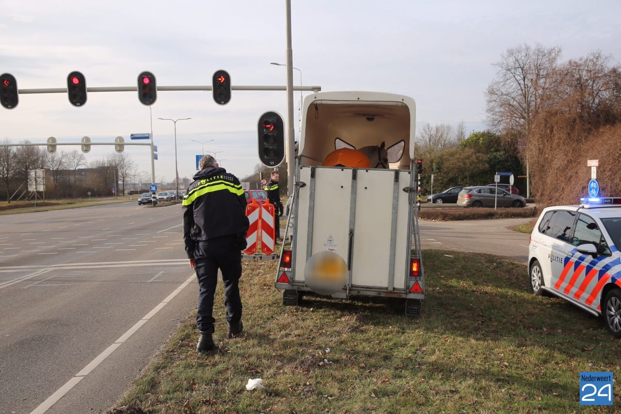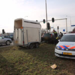 Het paard dat in de trailer stond, is ongedeerd. Een inzittende van de aangereden auto is gewond geraakt en wordt onderzocht door het ambulancepersoneel.