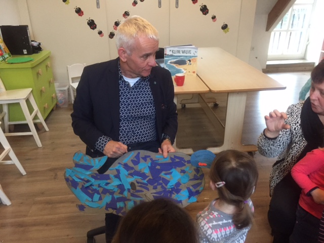 Het was een gezellig boel en omdat ze het zo leuk vonden dat Henk kwam voorlezen, hadden de kinderen voor hem “de kleine Walvis” gemaakt. Super bedankt voor de gezellige ochtend!