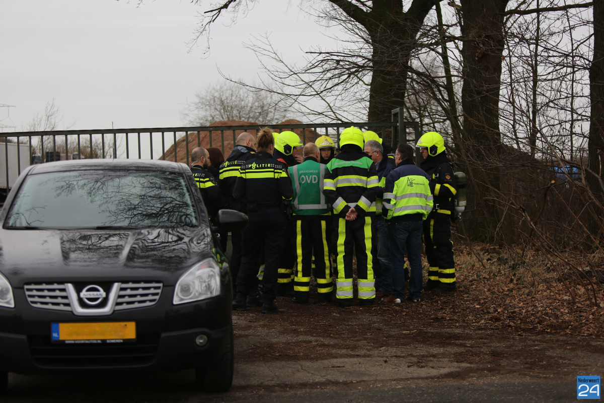 Politie en brandweer zijn vrijdagochtend uitgerukt vanwege een vreemde geur bij een terrein aan de Bergdijk in Leveroy.