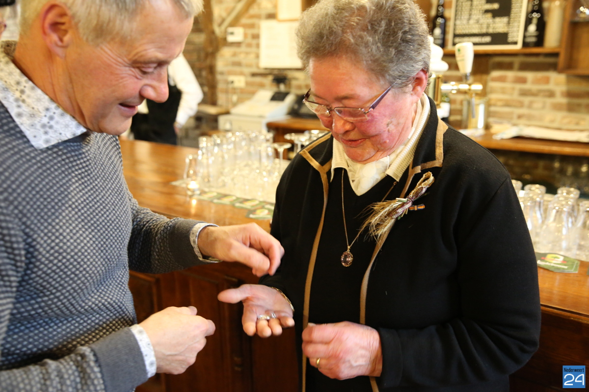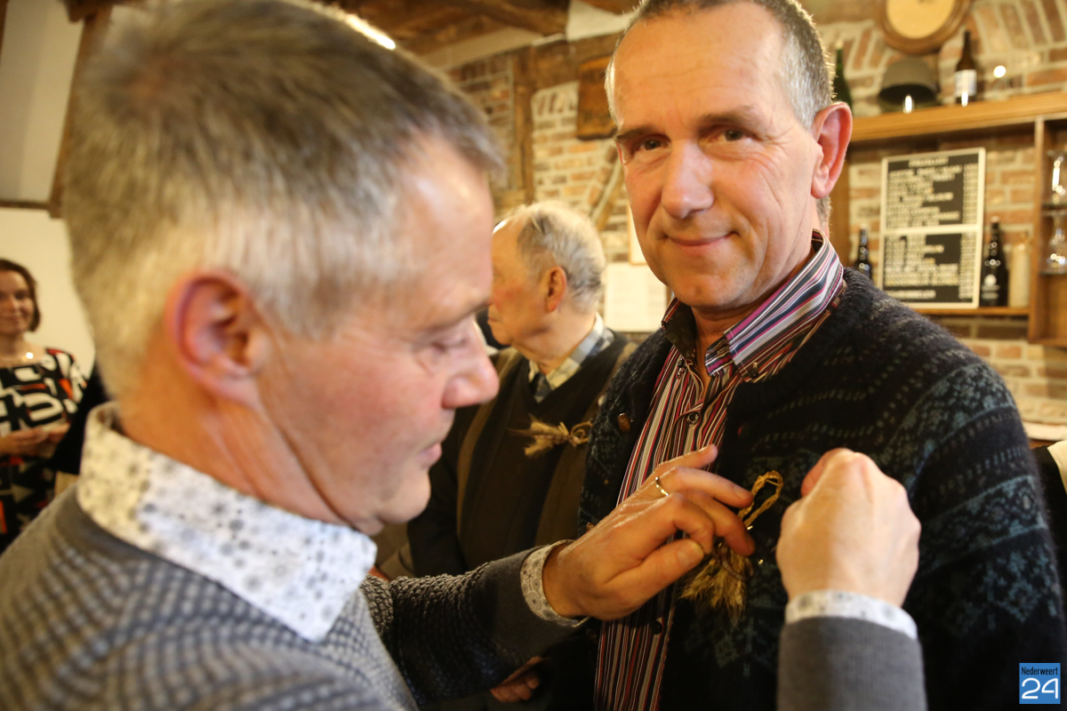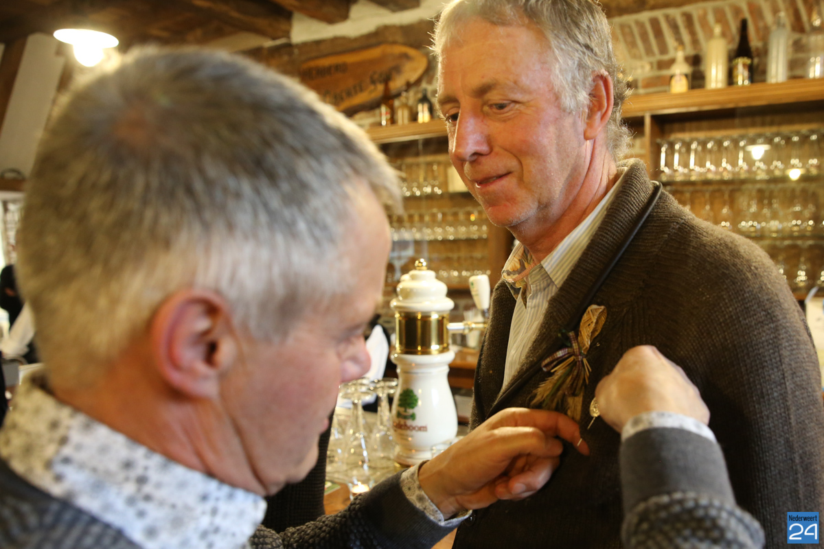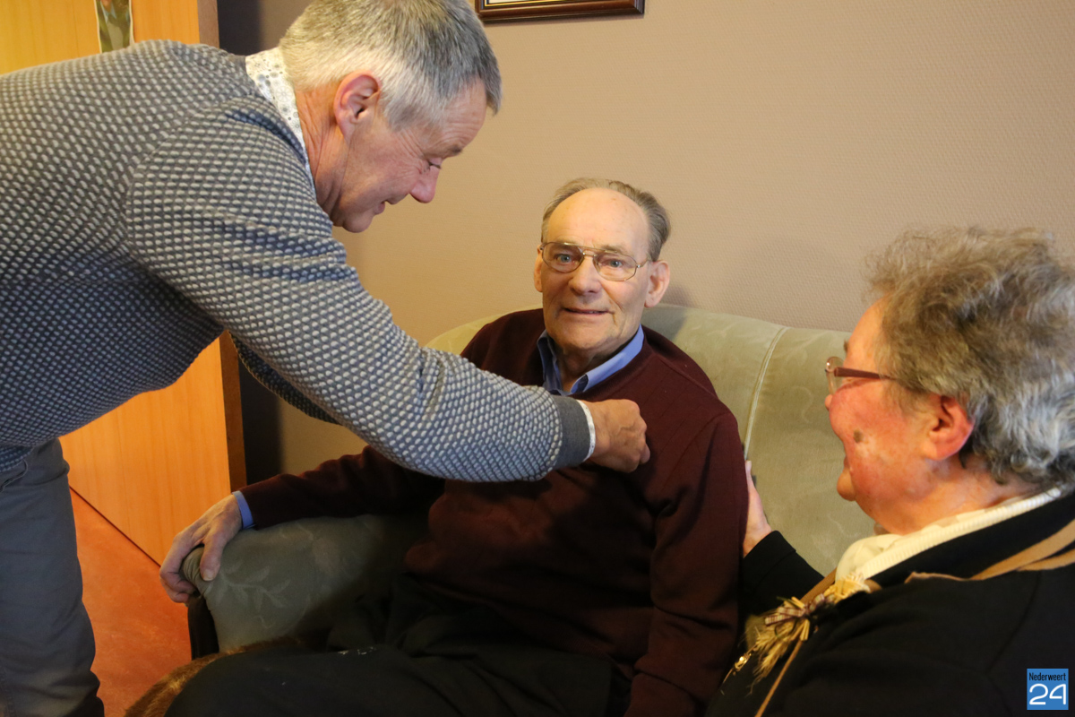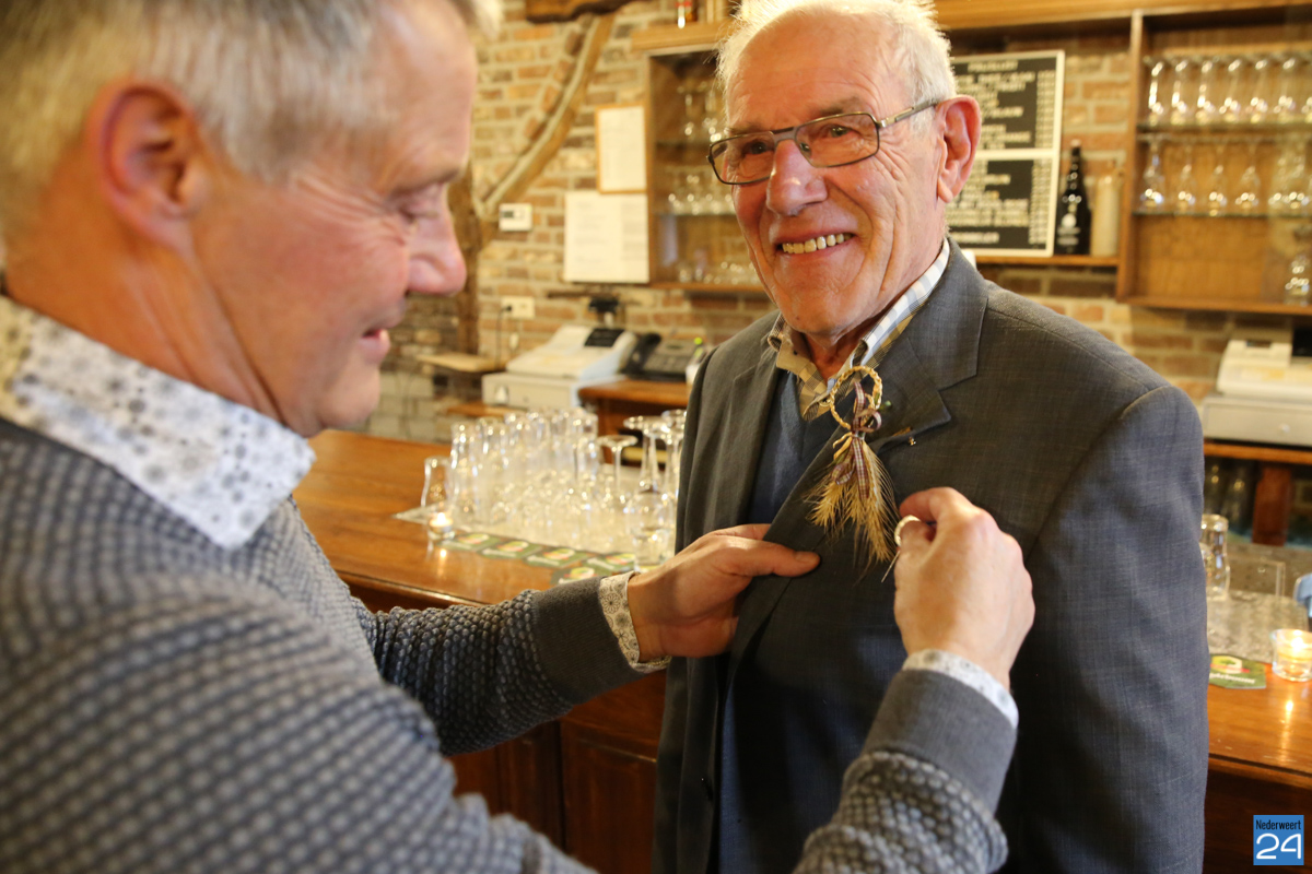 Omdat Toon van Nieuwenhoven niet meer zelf naar de herberg kon komen ging de voorzitter, samen met Maria naar Zorgcentrum St Joseph in Nederweert om hem daar persoonlijk ’t “Bèkkerke” op te spelden.