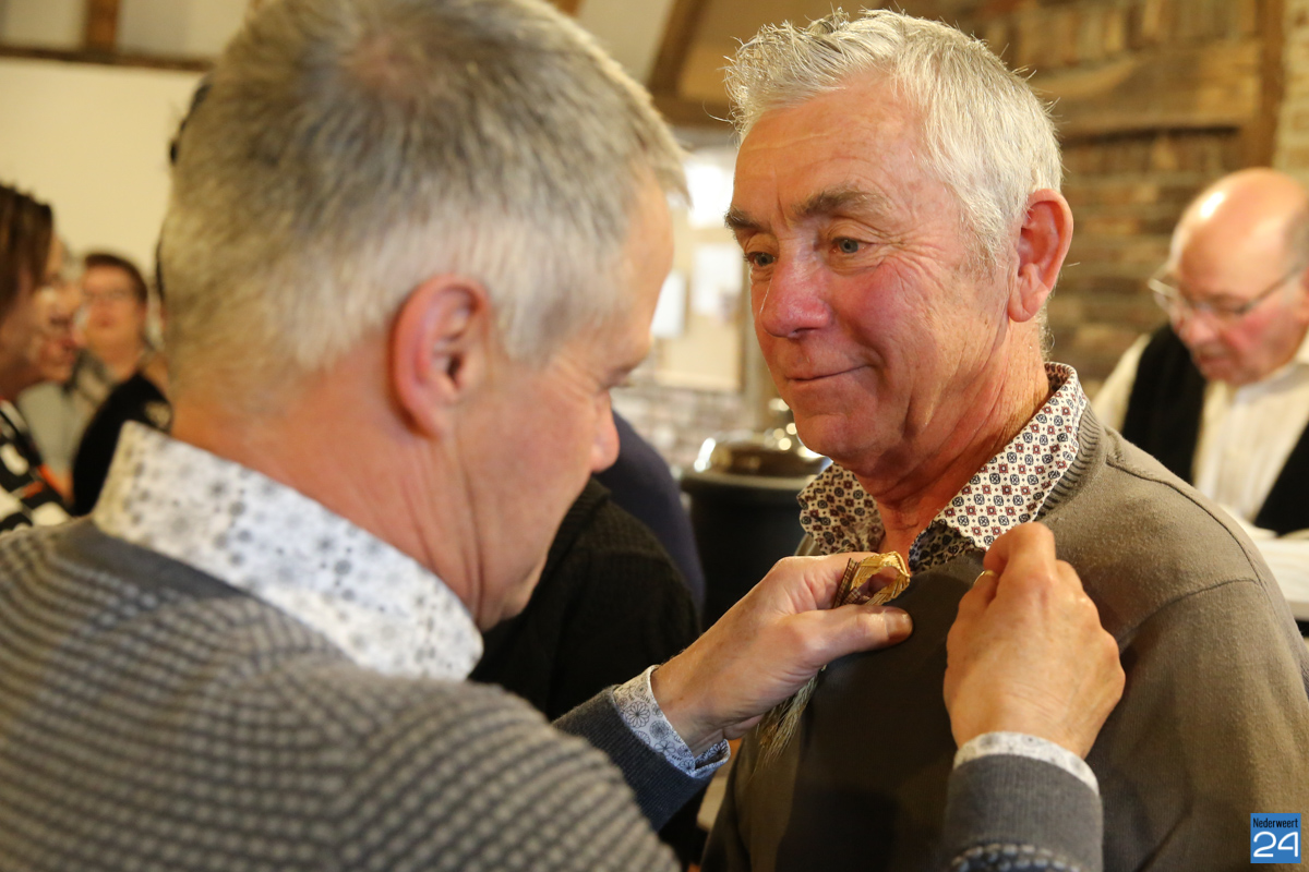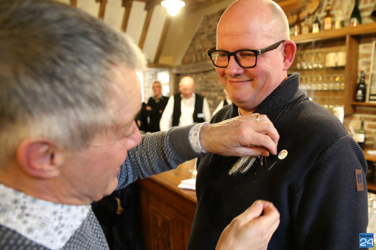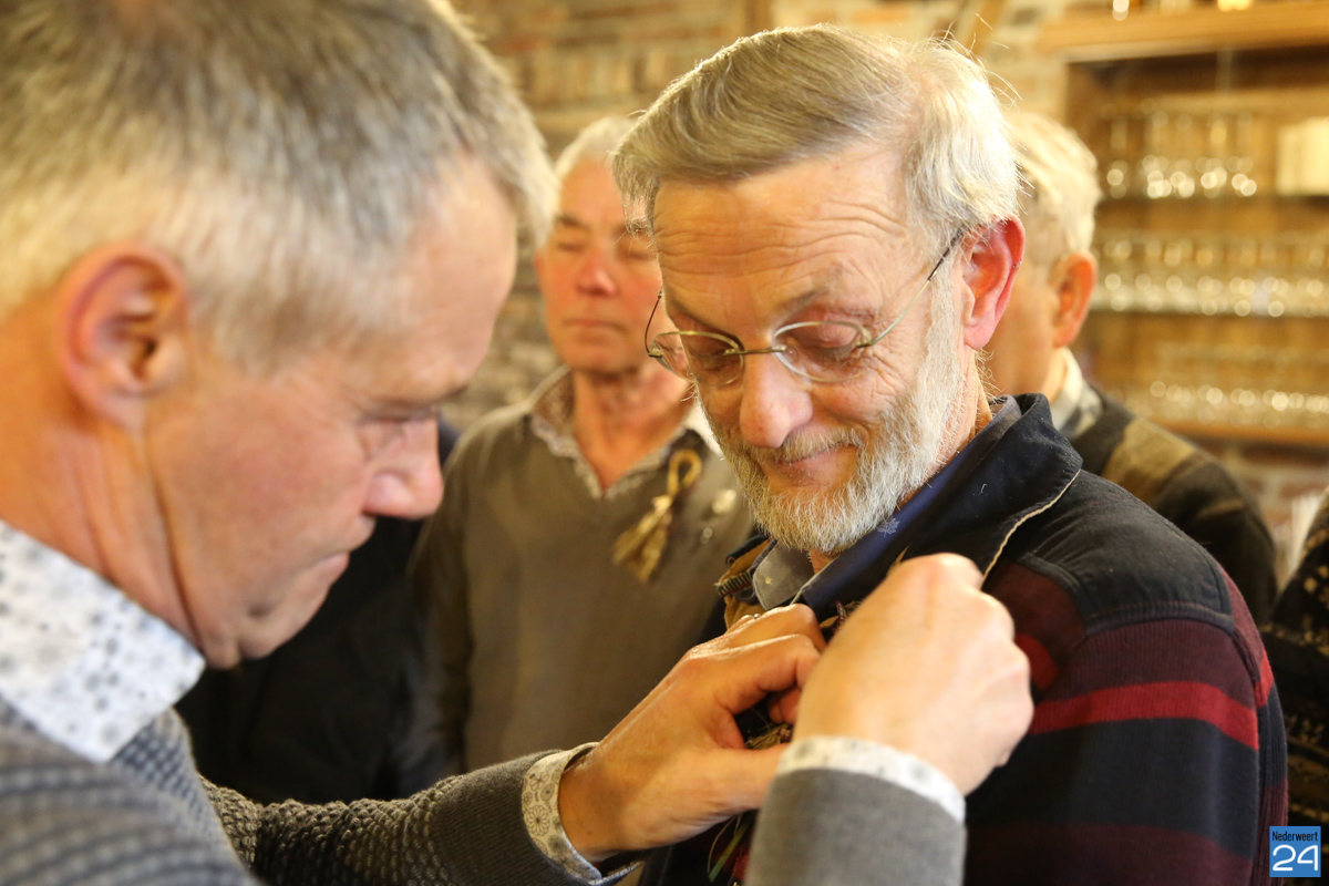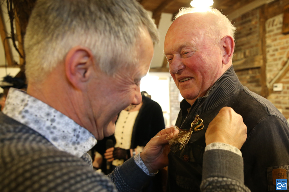 Omdat Toon van Nieuwenhoven niet meer zelf naar de herberg kon komen ging de voorzitter, samen met Maria naar Zorgcentrum St Joseph in Nederweert om hem daar persoonlijk ’t “Bèkkerke” op te spelden.