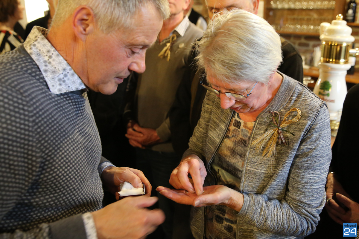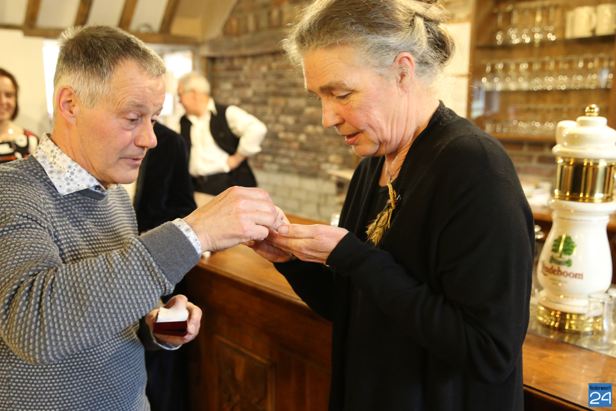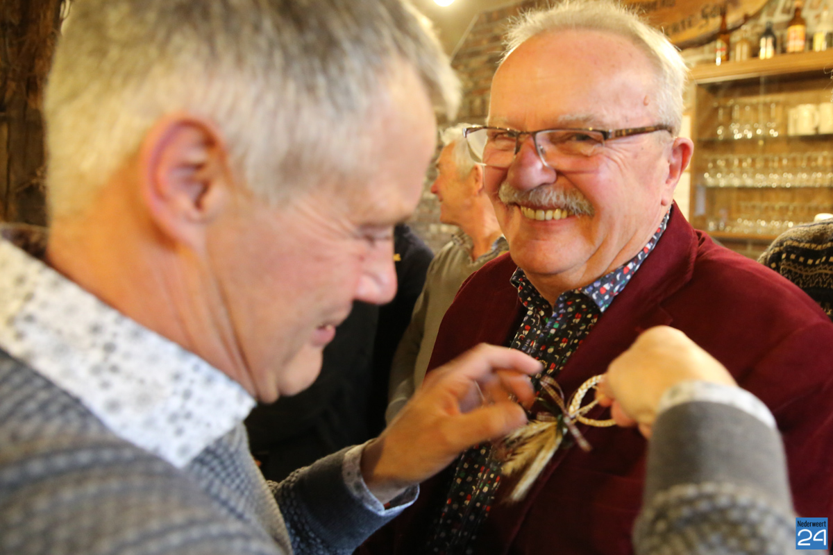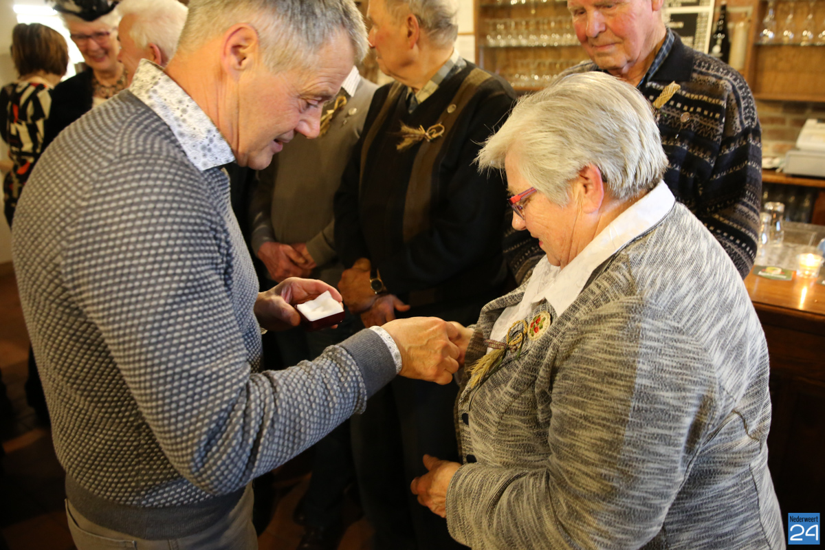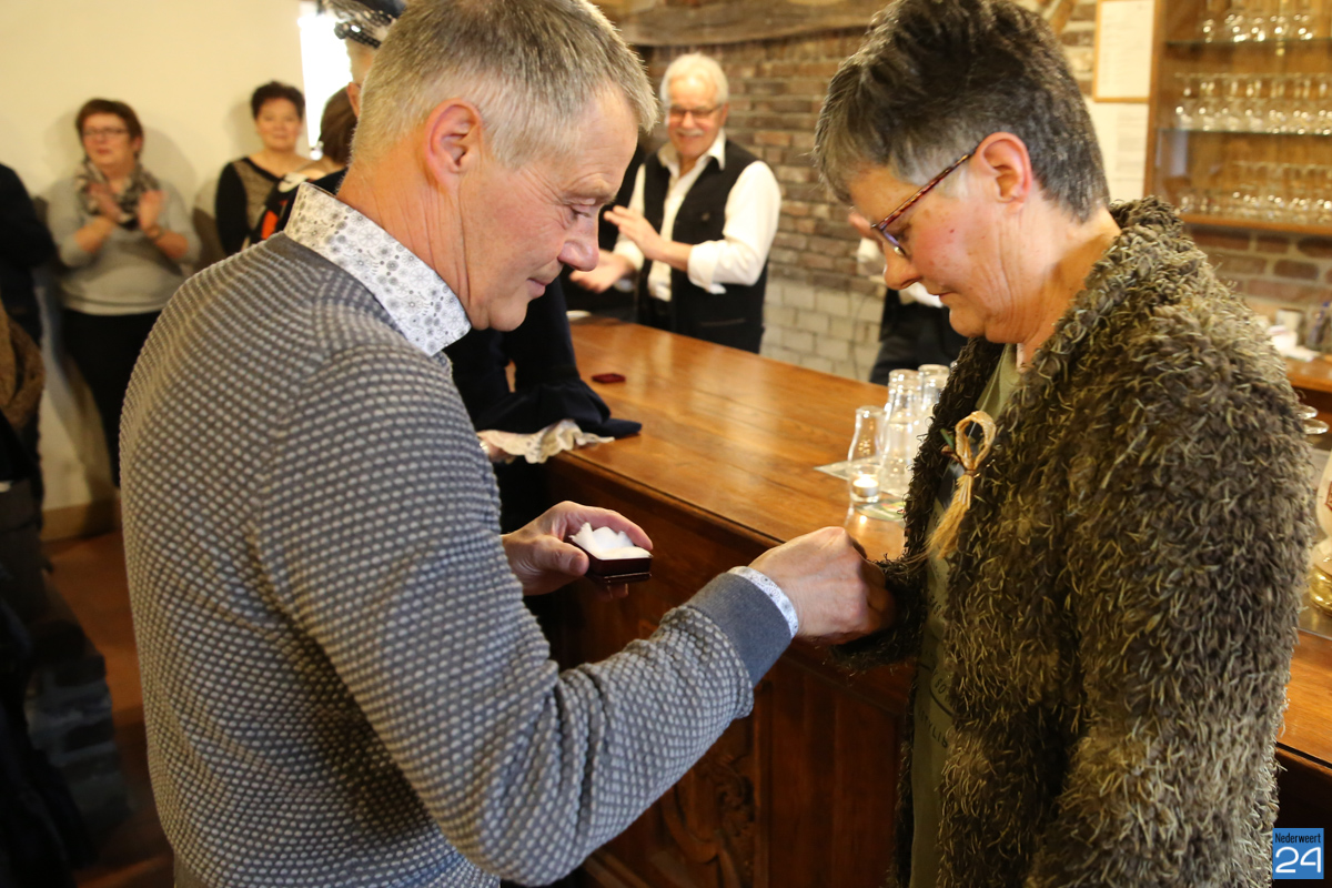 Omdat Toon van Nieuwenhoven niet meer zelf naar de herberg kon komen ging de voorzitter, samen met Maria naar Zorgcentrum St Joseph in Nederweert om hem daar persoonlijk ’t “Bèkkerke” op te spelden.