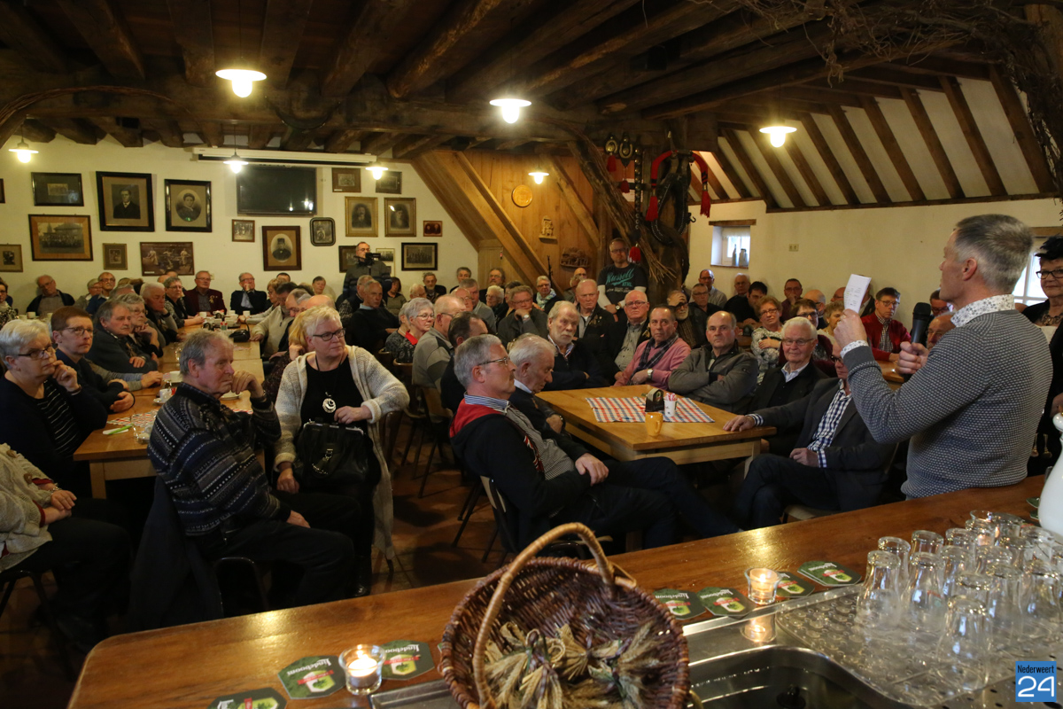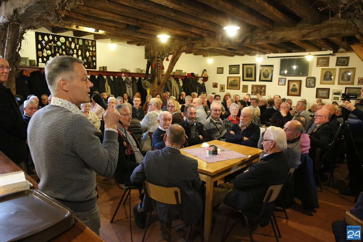 Voorzitter Peter Willekens sprak tijdens deze emotionele bijeenkomst al deze jubilarissen persoonlijk toe en onderscheidde hen met ‘t “Bèkkerke”. Een speldje met de afbeelding van Harrie Simons, bekend als Harrie van de Bèkker; eertijds een van de boegbeelden van Eynderhoof.