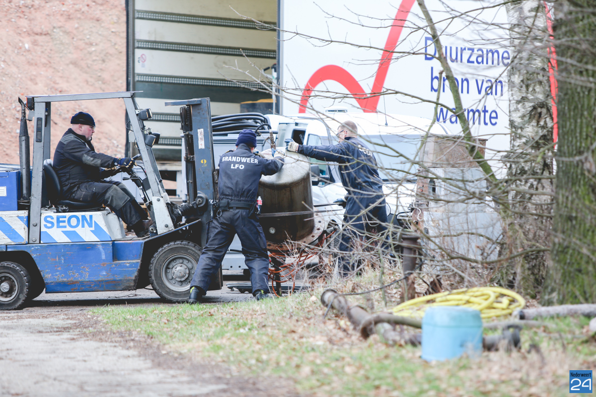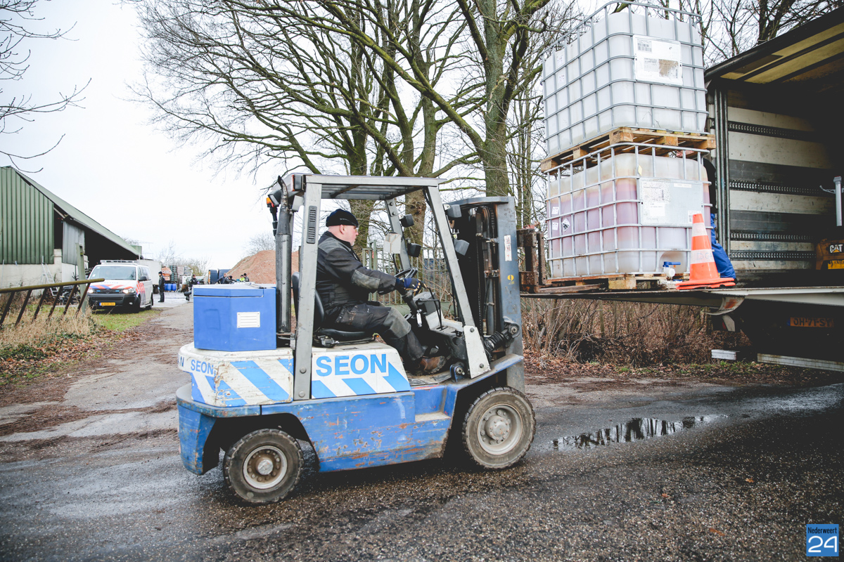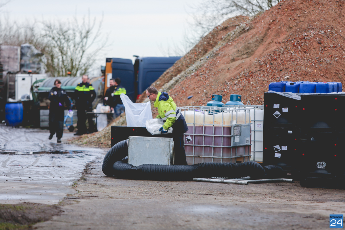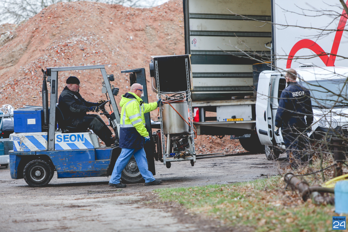 De Landelijke Faciliteit Ontmantelen (LFO) heeft zaterdag alle materialen en afvalstoffen van een drugslab afgevoerd voor vernietiging. De materialen lagen opgeslagen in een loods aan de Bergdijk in Leveroy. Ze werden vrijdag aangetroffen door een Buitengewoon Opsporingsambtenaar (BOA) van de gemeente Nederweert nadat er een vreemde geur werd waargenomen tijdens een controle.