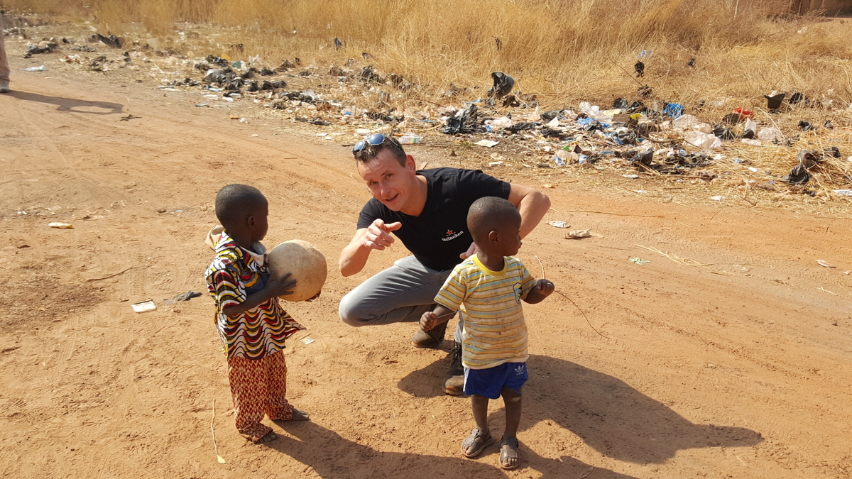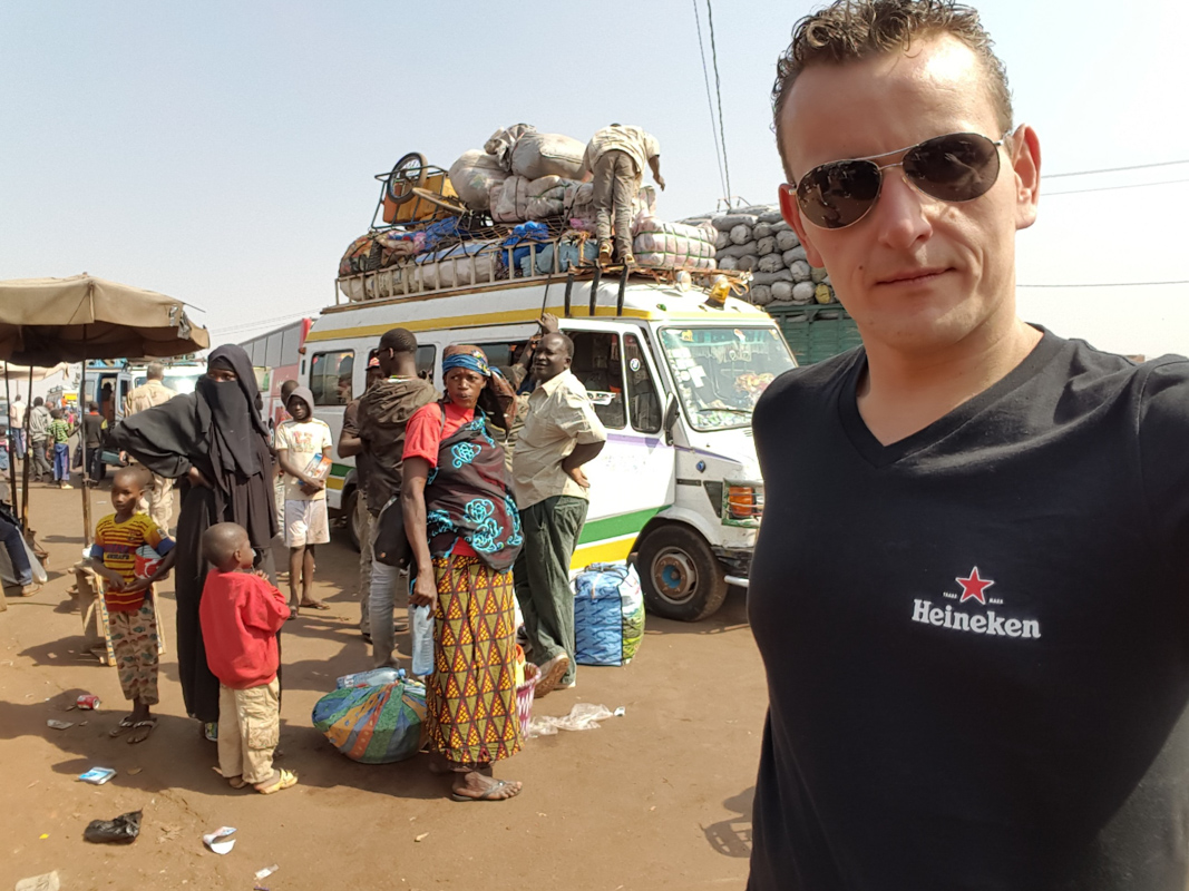 25 januari werd het groene licht gegeven en kon de reis beginnen ‘op naar Mali’, hetzelfde party-team (zo werden we inmiddels genoemd) stond klaar om wederom met een lijnvlucht naar Mali af reizen, de temperatuur in Mali was +35 graden Celsius tegenover -5 graden Celsius in Nederland, na een lange reis met één tussenstop kwamen we aan in Bamako (de hoofdstad van Mali), hier stond een compleet leger te wachten om mij en de rest van het team naar het zogenaamde transito-kamp te brengen, ook hier werden we enthousiast onthaald. Na een kop koffie en een gezellig praatje was het tijd om naar bed te gaan (het eerste optreden zou de volgende dag namelijk al plaatsvinden), de volgende dag werden we onder strenge beveiliging door de omliggende dorpjes begeleidt, het was een indrukwekkende tocht door het ‘normale leven in een oorlogsgebied’, je merkte aan de inwoners dat ze het leuk vonden en wilde dan ( tegen alle verwachtingen in) ook graag op de foto. Na enkele uren cultuur snuiven was het tijd om aan de slag te gaan op het transito-kamp.