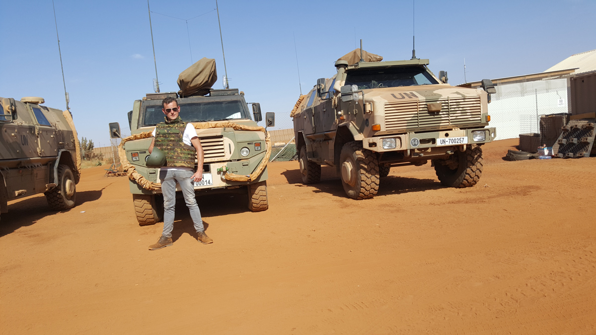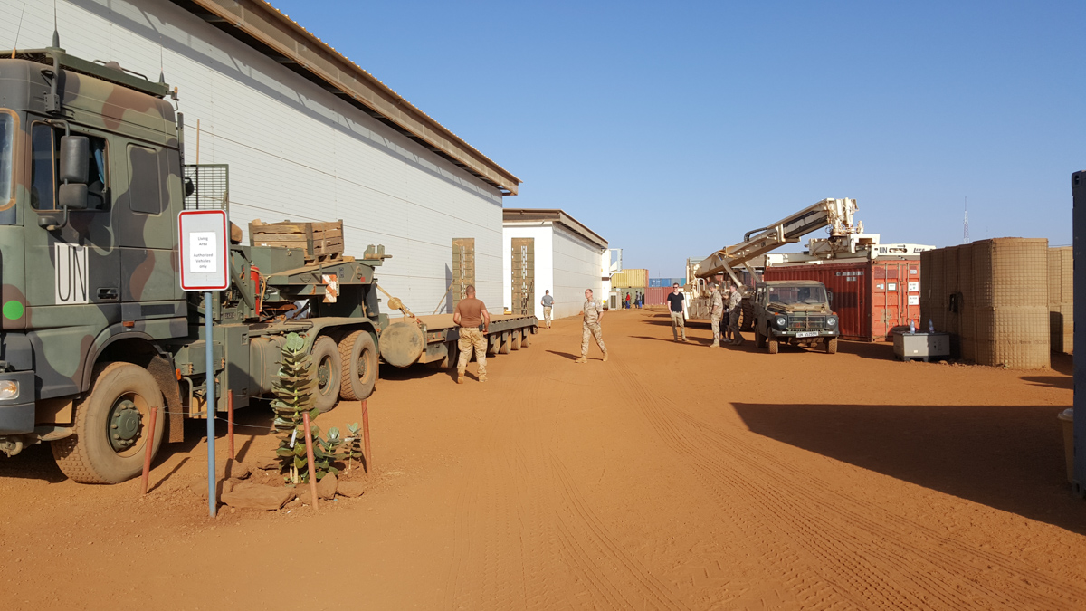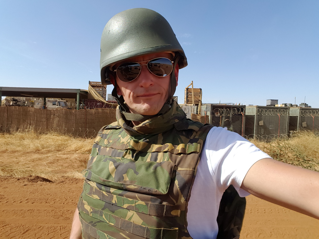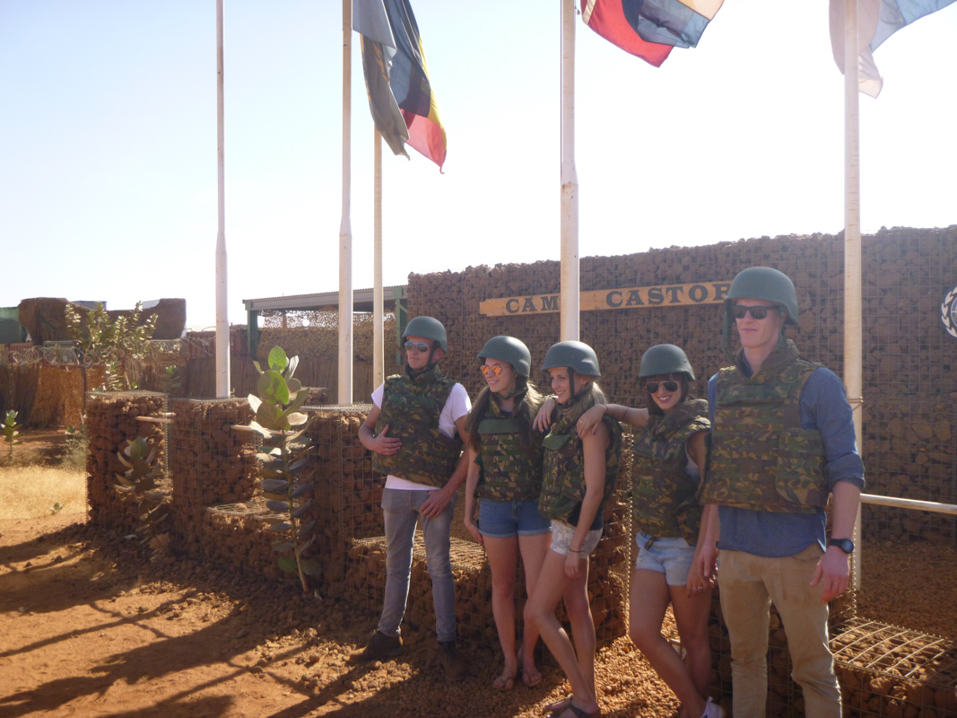 27 januari zou de reis beginnen naar Gahou (Mali), onder begeleiding van diverse militairen werden we met een speciale vlucht naar Gahou gevlogen, omdat hier enkele weken terug ‘de aanslag’ was geweest was het extra spannend maar de aanwezige militairen zorgde ervoor dat dat gevoel snel minder werd. Via een apart aangelegde weg werd het party-team naar het kamp gebracht (scherfvesten en helmen moesten aan), Aangekomen werden we welkom geheten en het slaapverblijf aangewezen. Nadat de bagage op de kamer was gezet werd het programma doorgenomen. De begeleider had op het hele kamp bij diverse afdelingen afspraken gemaakt dat ze bezoek kregen van ons , overal werd verteld wat ze daar deden en hoe hun ervaringen waren, dit was ontzettend indrukwekkend en het zette de vooroordelen toch wel weer aan het denken. Na de maaltijd (die overigens uitstekend was) werd er nog even gezellig nagepraat en gedoucht (douchen mocht overigens maar max. 2 minuten omdat er een te kort was aan water).