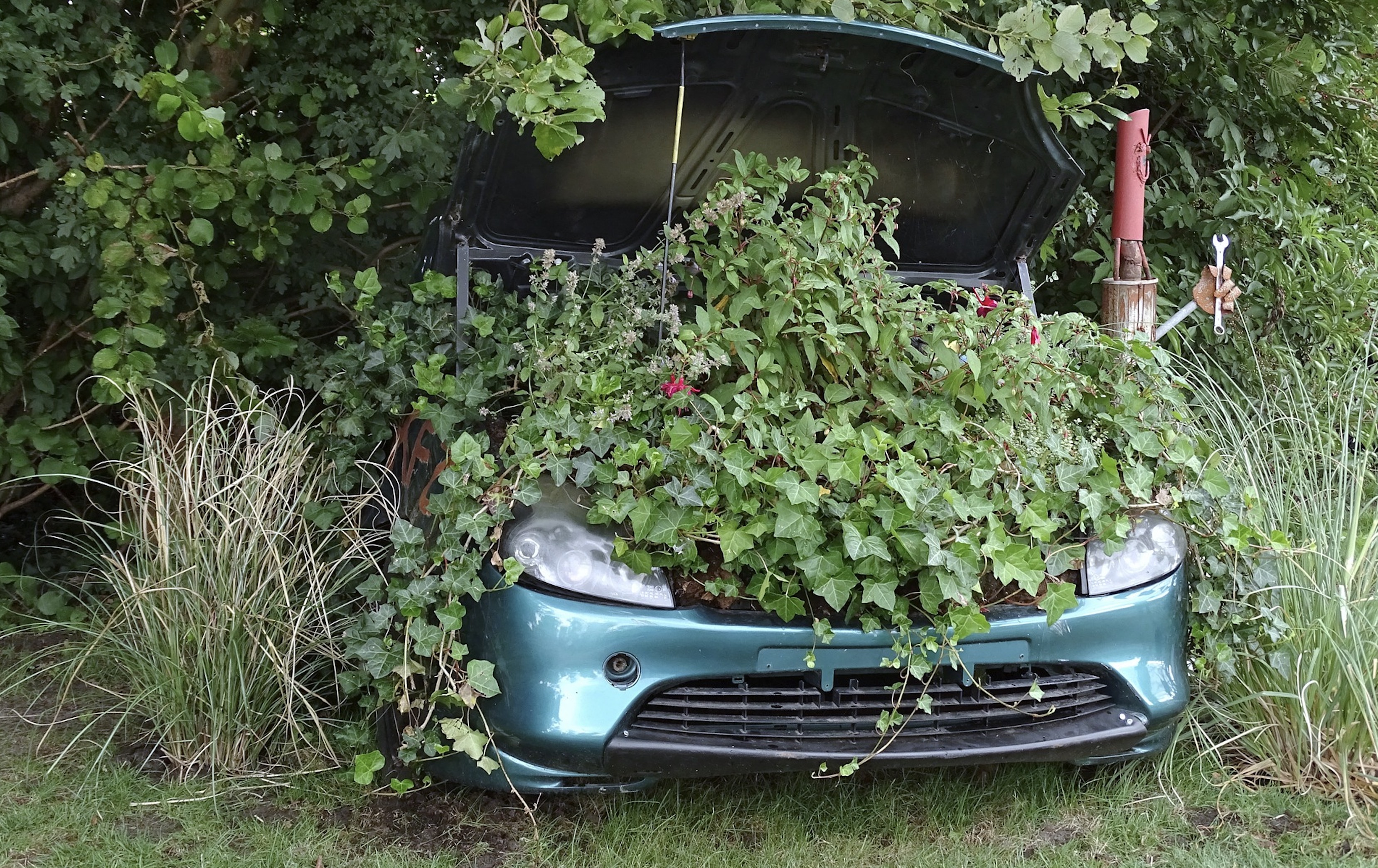 Nieuwe uitvoering van de auto met veel groene energie onder de motorkap. Gestopt bij een hand met sleutel, waarschijnlijk om de boel op te laden. Dit mag ook door een berger worden uitgevoerd trouwens 😀