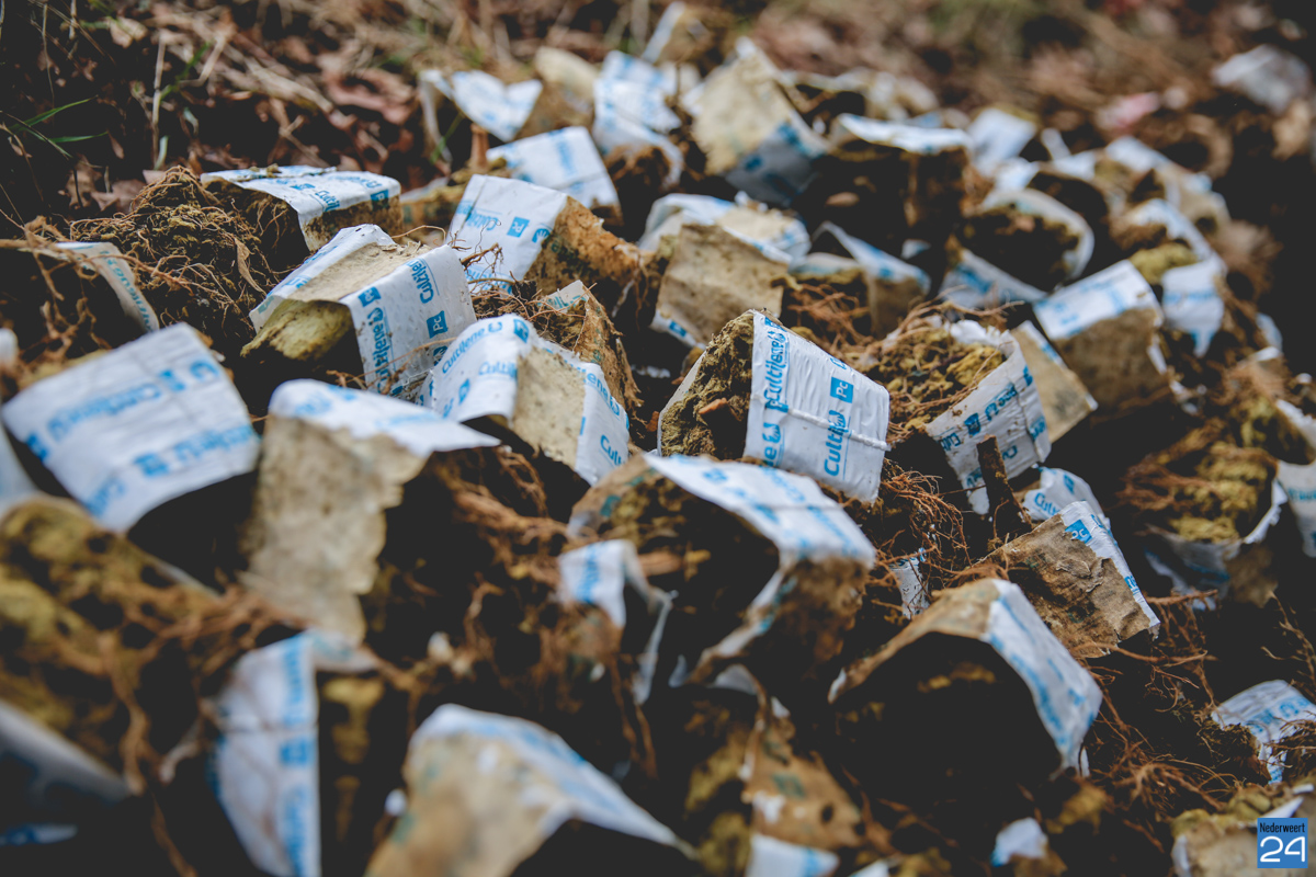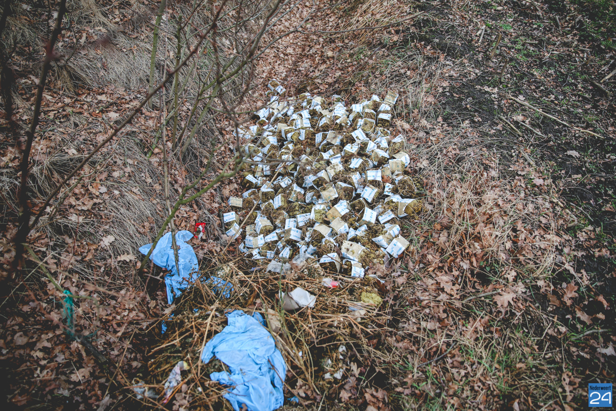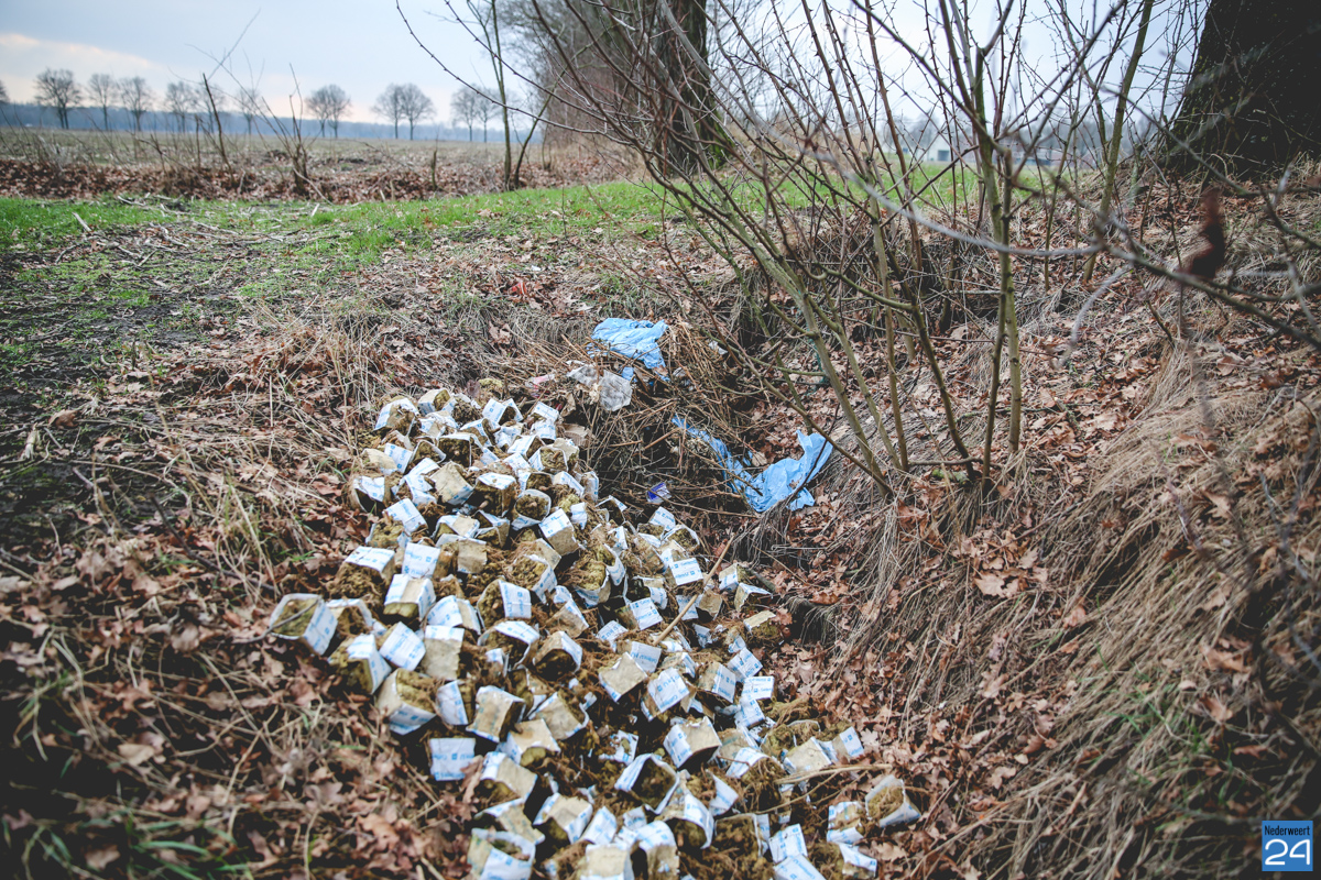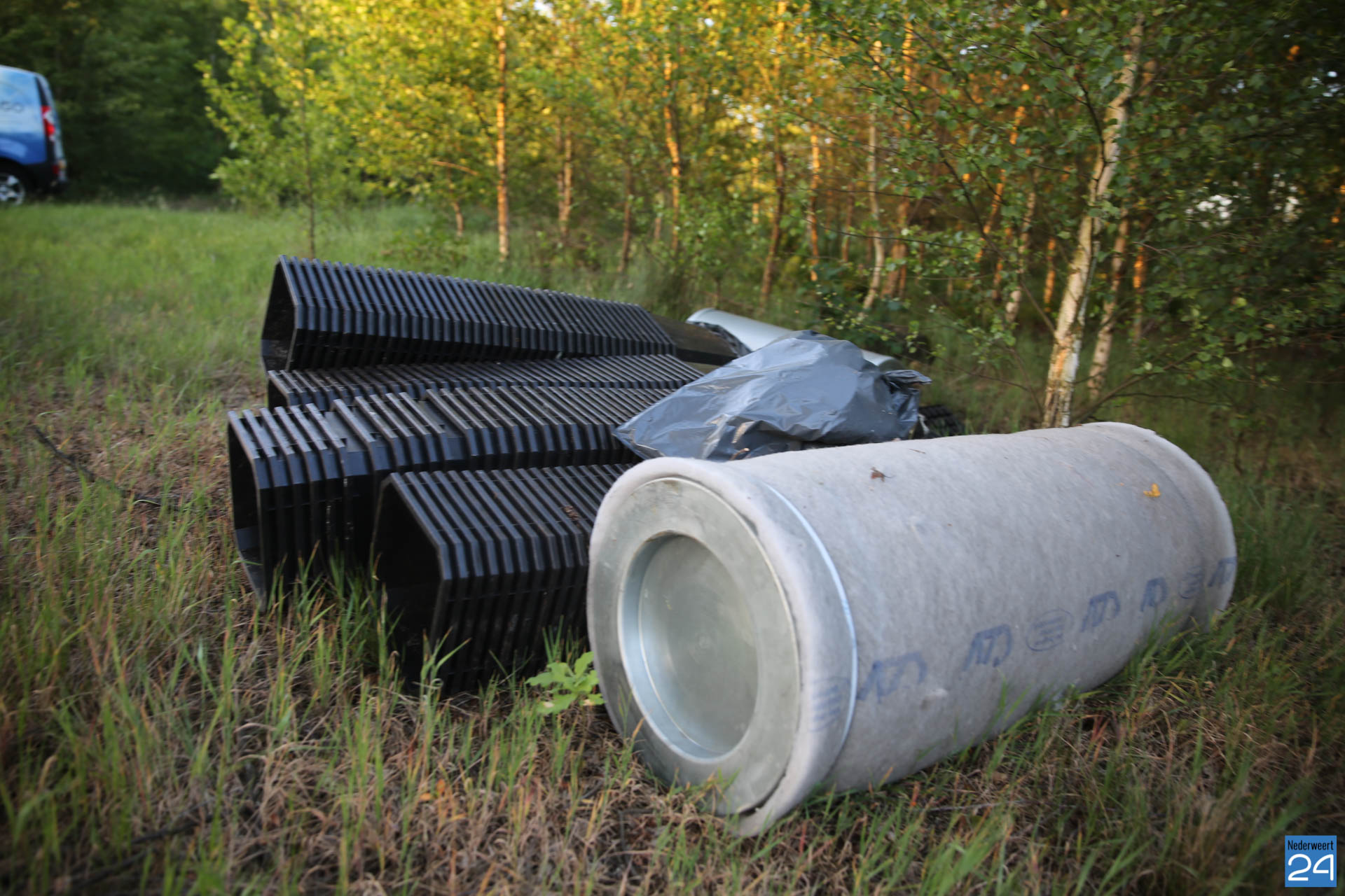 Maandagmiddag heeft een wandelaarster hennepafval ontdekt aan een zandpad in Ospeldijk. In volume lijkt het in eerste instantie niet zoveel, maar in aantal, zo’n 500 bakjes, is het toch een behoorlijke dumping.