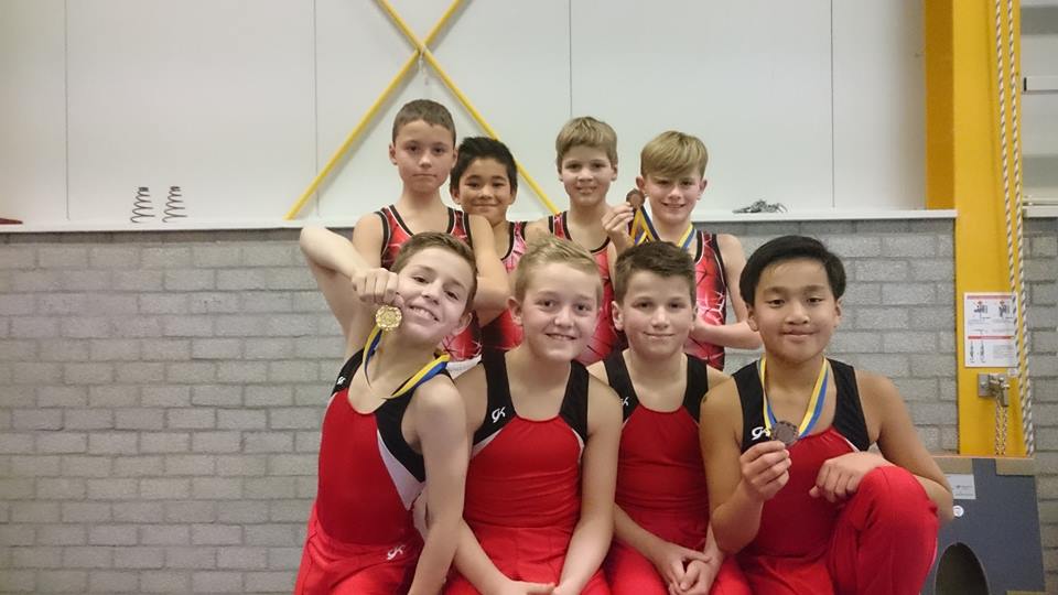 Kay Driessen, Kaj Peek en Jonah Franzen hebben alle drie sinds vorig jaar grote stappen gezet en hun oefeningen moeilijker gemaakt om nog meer punten te kunnen scoren. De nadruk lag dan ook om deze oefeningen zo netjes mogelijk uit te voeren. Hier en daar werd een klein foutje gemaakt, maar uiteindelijk was het doel bereikt en waren zij allen heel tevreden over het resultaat. Jonah liet tijdens rek een super stoere salto uit reuzenslinger zien wat hem een bronzen plak opleverde in het eindresultaat.