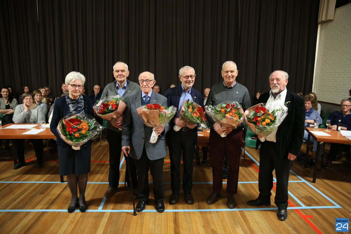 Na de jaarvergadering op dinsdag 7 februari, zijn bij Fanfare Concordia Leveroy maar liefst zes jubilarissen gehuldigd met een totale lengte aan lidmaatschap van 345 jaar! Erelid Truus Korten is 25 jaar lid van de vereniging. Het oudste lid van de vereniging is Tinus Brentjens en hij is maar liefst 60 jaar lid van onze fanfare. Deze leden hebben respectievelijk de  zilveren insigne en de vergulde insigne met 2 zirkonia’s opgespeld gekregen.