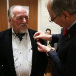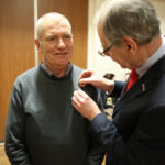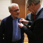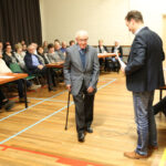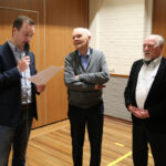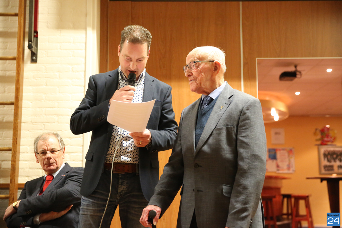 Tenslotte zijn ook Joep van de Broek en Lei van Roij beiden 65 jaar lid en kregen beide de vergulde insigne met twee robijntjes opgespeld. En het bijzondere hieraan is tevens dat zij allebei ook nog steeds spelend lid zijn in het korps. Voorzitter Erwin Pellemans sprak hen lovende woorden toe en had uitgerekend dat zij in die 65 jaar ongeveer 2.500 repetities hebben bezocht. Alleen die mijlpaal is al een prestatie van formaat. Maar daarnaast prees Erwin ook de vele verdiensten die Joep en Lei voor de vereniging hebben verricht en nog steeds verrichten. “Joep en Lei, jullie zijn stille motors voor onze vereniging. Motors die niet veel kabaal maken, weinig onderhoud vergen, nooit stukken hebben, maar zo ontzettend waardevol zijn en waar heel veel verenigingen op lopen.” Om die waardering die de vereniging heeft voor deze leden kracht bij te zetten werd aan de vergadering gevraagd om Joep en Lei te benoemen tot erelid van Fanfare Concordia. Een verzoek dat met applaus door de vergadering werd onderstreept en bekrachtigd.