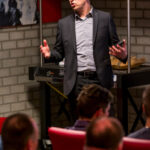 Ondernemers uit Keyport2020 regio worden bijgepraat door Marijn Dekkers van de Rabobank over dit fosfaatreductieplan bij Loeigezellig in Ospel op uitnodiging van de drie lokale banken in Midden-Limburg en Cranendonck.
