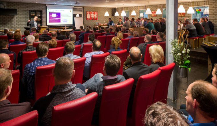 Ondernemers uit Keyport2020 regio worden bijgepraat door Marijn Dekkers van de Rabobank over dit fosfaatreductieplan bij Loeigezellig in Ospel op uitnodiging van de drie lokale banken in Midden-Limburg en Cranendonck.