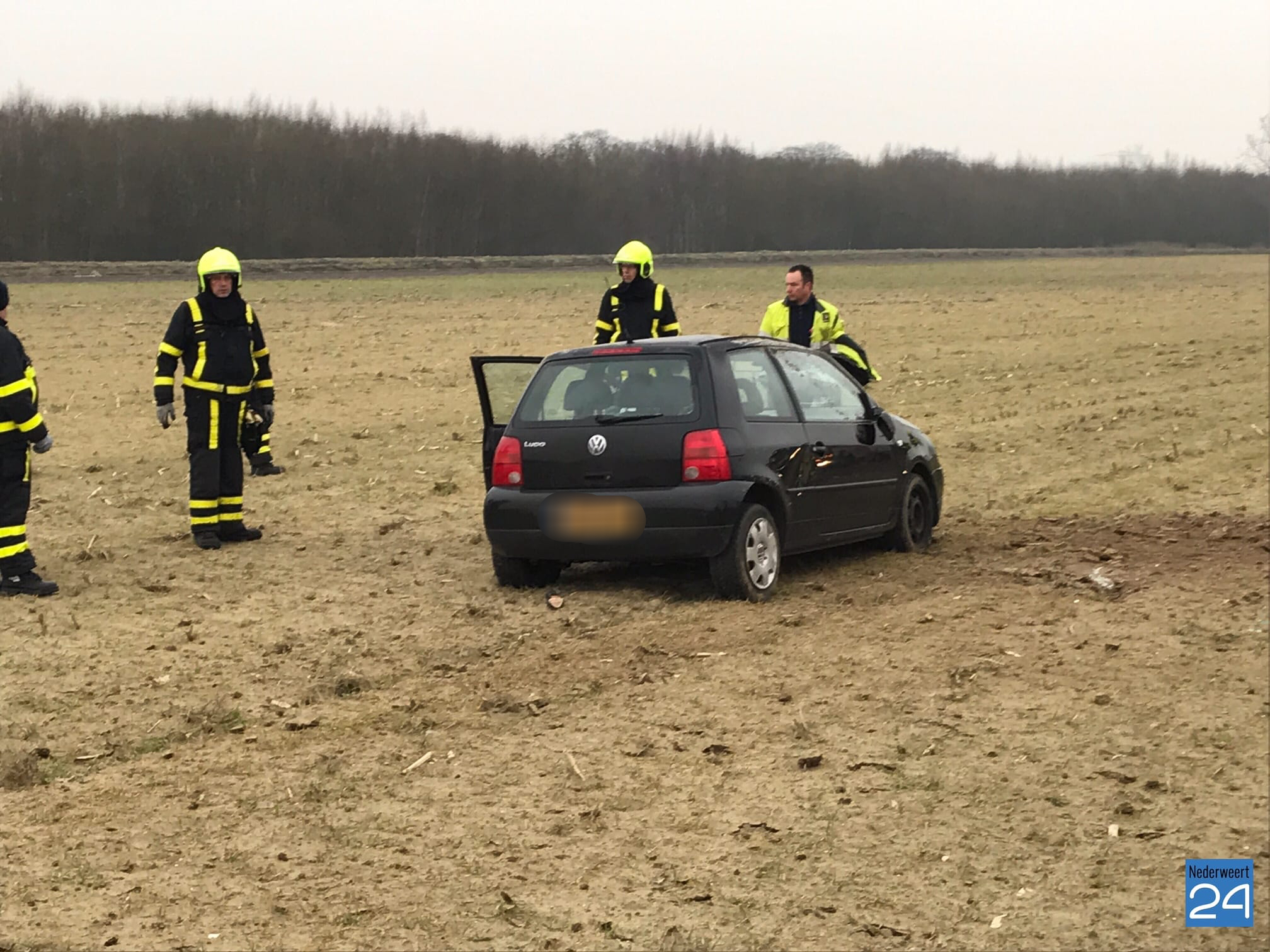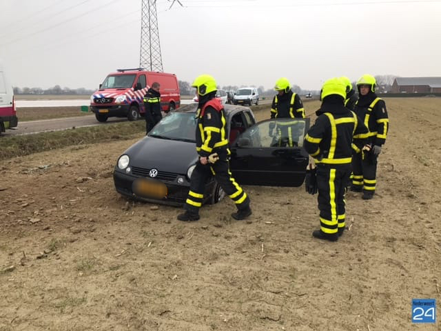 Auto slaat over de kop en belandt in akker