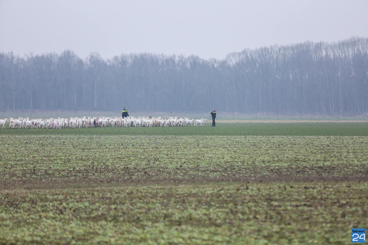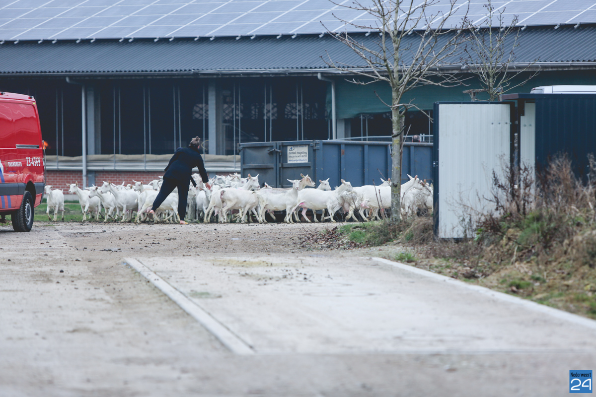 UPDATE: de geiten staan inmiddels allemaal achter hekken in een soort “noodopvang”. Van hieruit zullen ze naar een ander bedrijf worden gebracht.