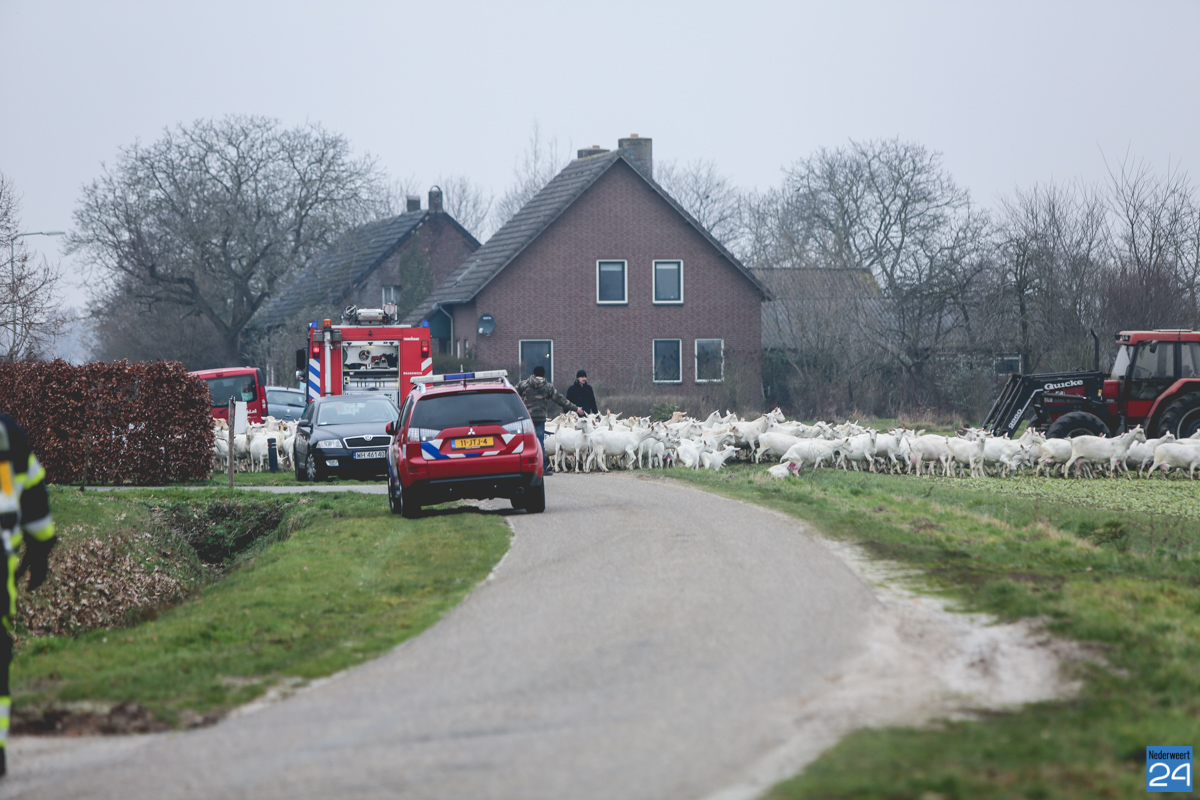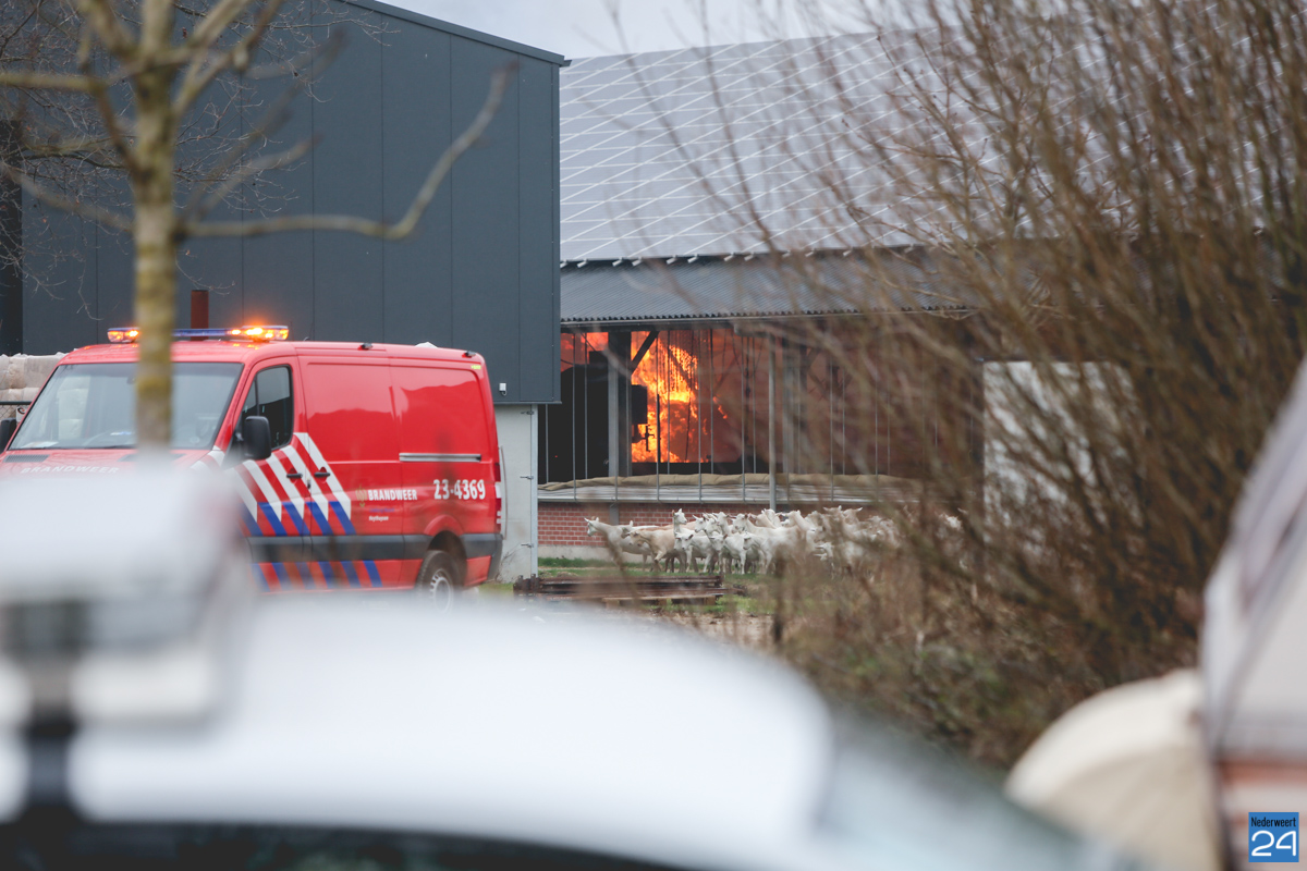 Het vuur brak even voor half elf uit in een schuur vol hooi en stro. De vlammen sloegen over na de naastgelegen stal waar zo’n ruim 2.000 geiten in stonden. Samen met de eigenaar en werknemers van het bedrijf wisten brandweer en politie de geiten in veiligheid te brengen.