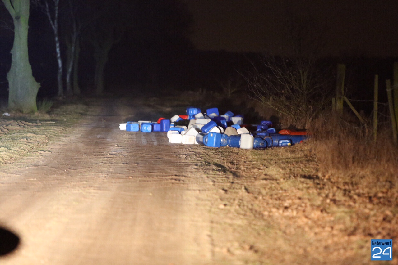 Een voorbijganger had de jerrycans zien liggen. Na een telling van de politie bleek het om ongeveer 40 jerrycans en een aantal gasflessen te gaan. Uit enkele vaten lekt vloeistof en er werd een penetrante geur waargenomen. Brandweerlieden in beschermende kleding hebben metingen verricht en maatregelen genomen om meer schade te voorkomen.