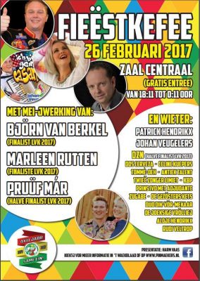 Zondag 26 februari is weer ut fieëstkeffee in zaal Centraal waar ook dit jaar weer bekende en lokale artiesten het podium zullen betreden.