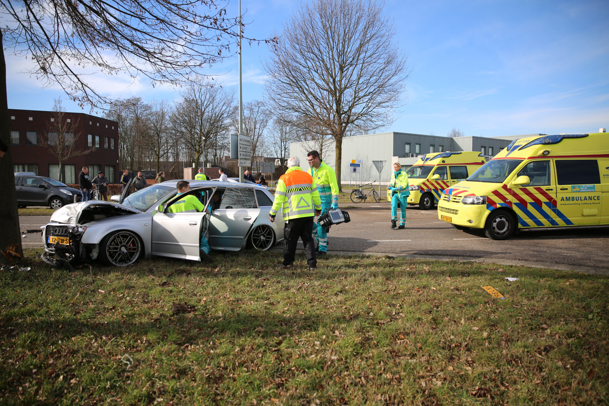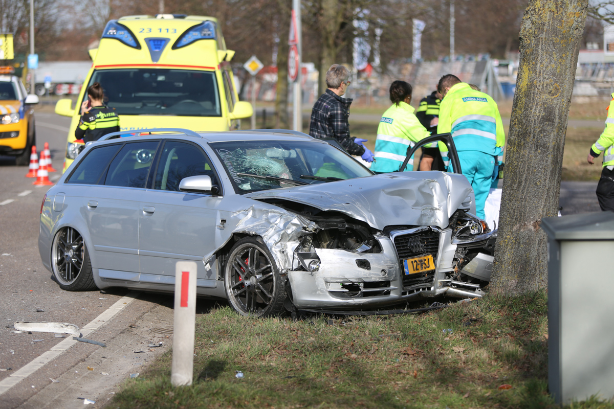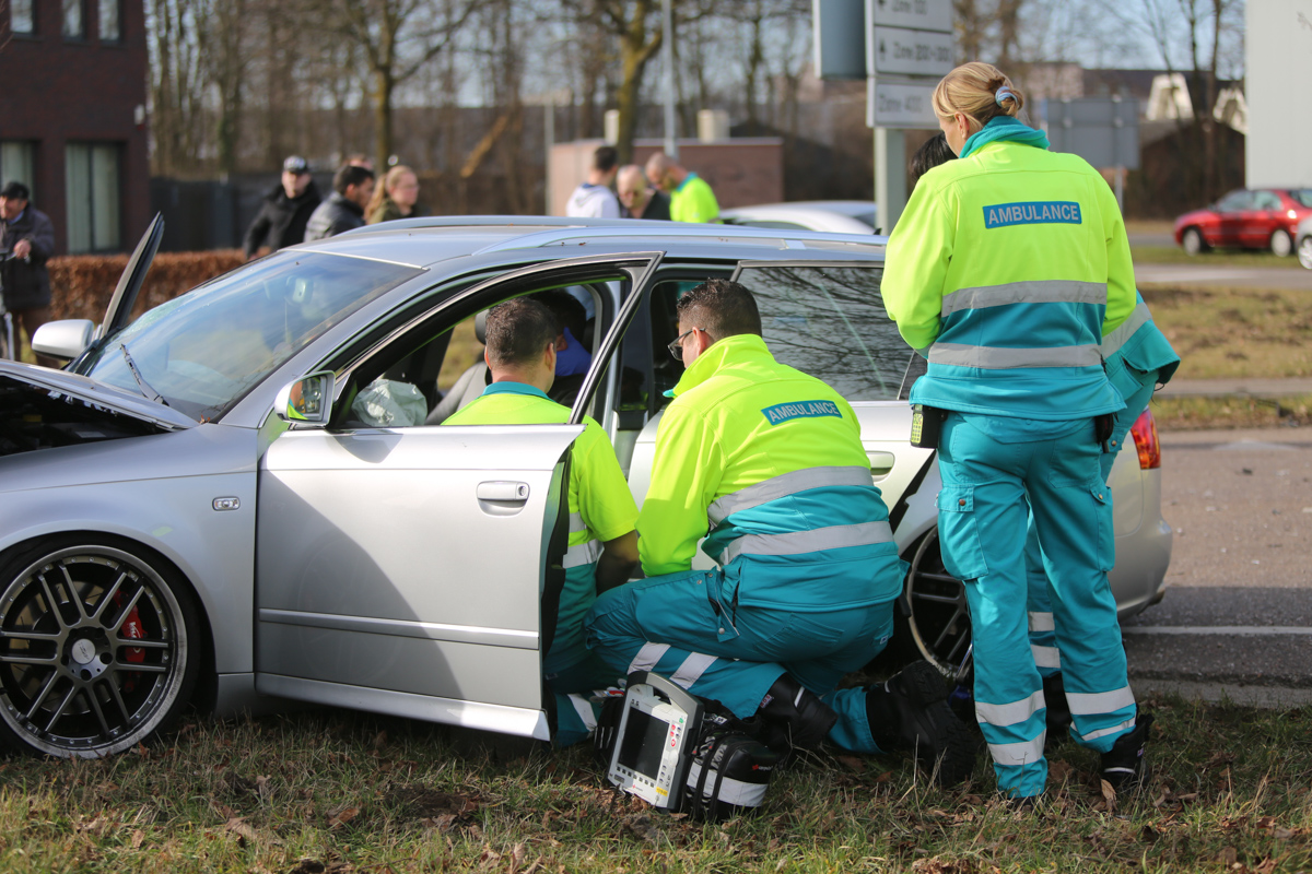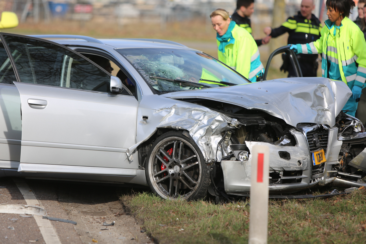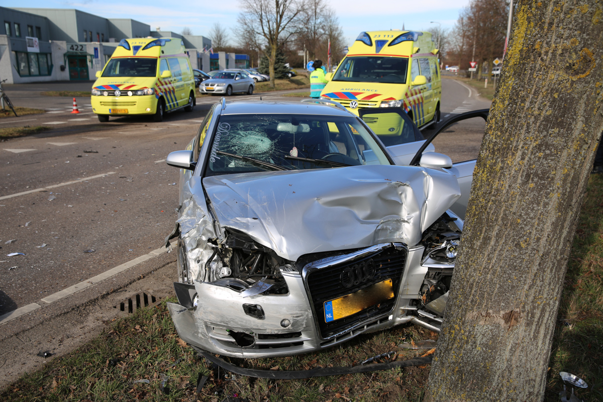 De twee auto’s botsten door nog onbekende oorzaak op elkaar op de voorrangskruising met de Mangaanstraat op industrieterrein Pannenweg. Beide bestuurders en een inzittende zijn met de ambulance naar het ziekenhuis gebracht. De politie onderzoekt de toedracht van het ongeval.