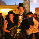 Na een gezellige middag met genodigden ging het gezelschap naar café de Schans waar alle feestvierders konden aansluiten bij het bruidspaar. Vanaf hier ging de stoet naar gemeenschapshuis de Pinnenhof waar het burgerlijk huwelijk werd voltrokken door de ambtenaar van de burgerlijke stand, Giel Bruijnaers. Daarna werd het pas getrouwd stel ‘in de kerk’ gezegend door predikant Paul Koppen. De orde zal werd dit jaar voor het eerst bewaakt door de nieuwe “Booj” Nick Steuten.